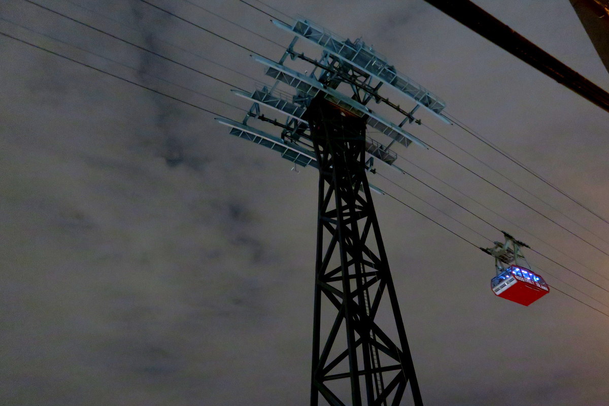 Здесь останавливается канатная дорога. С моста вниз спуститься сейчас нельзя. А раньше тут работали лифты. Не только для пешеходовов, но и для машин. Можно было приехать, и спуститься вниз прямо за рулём. Тогда это было единственное сухопутное сообщение с островом. Но потом построил дополнительные мосты, и лифт перестал работать.