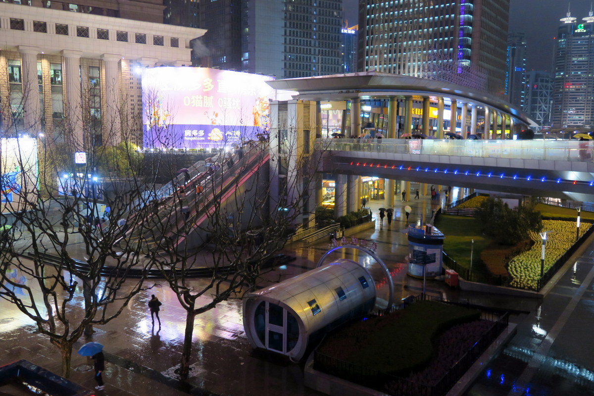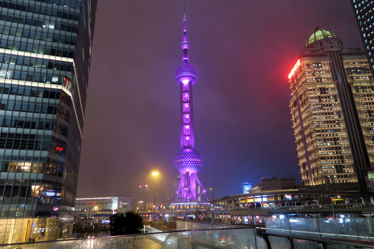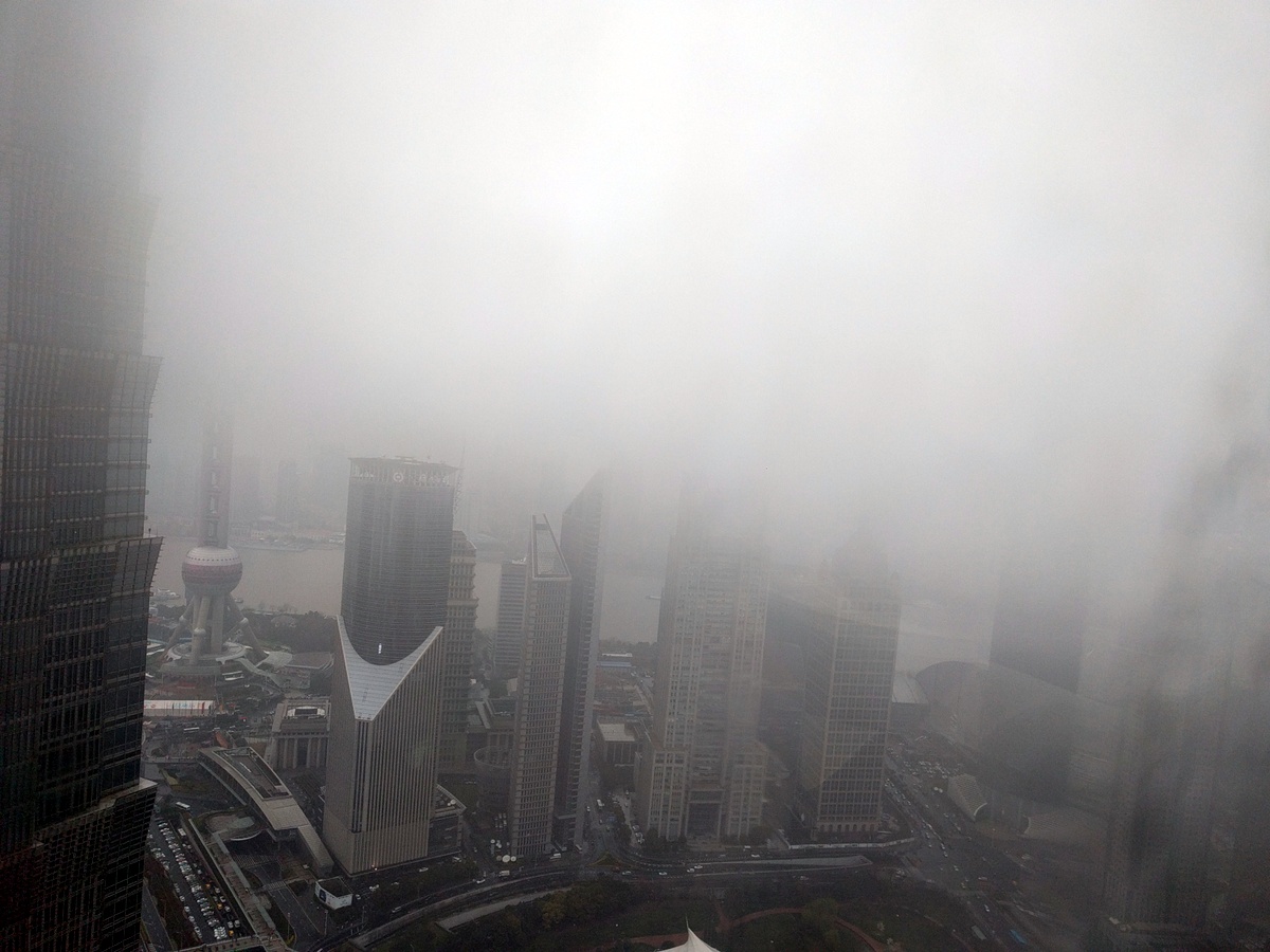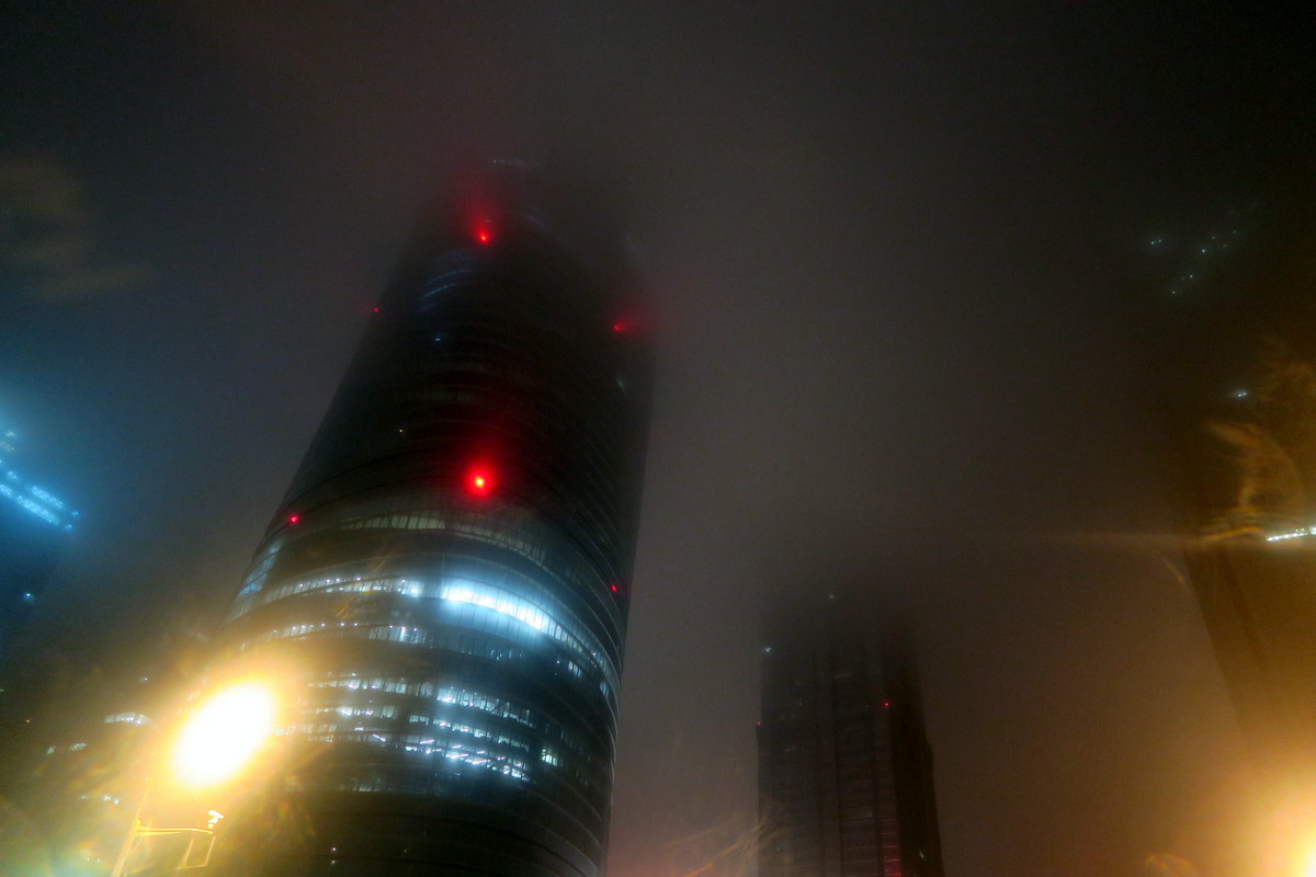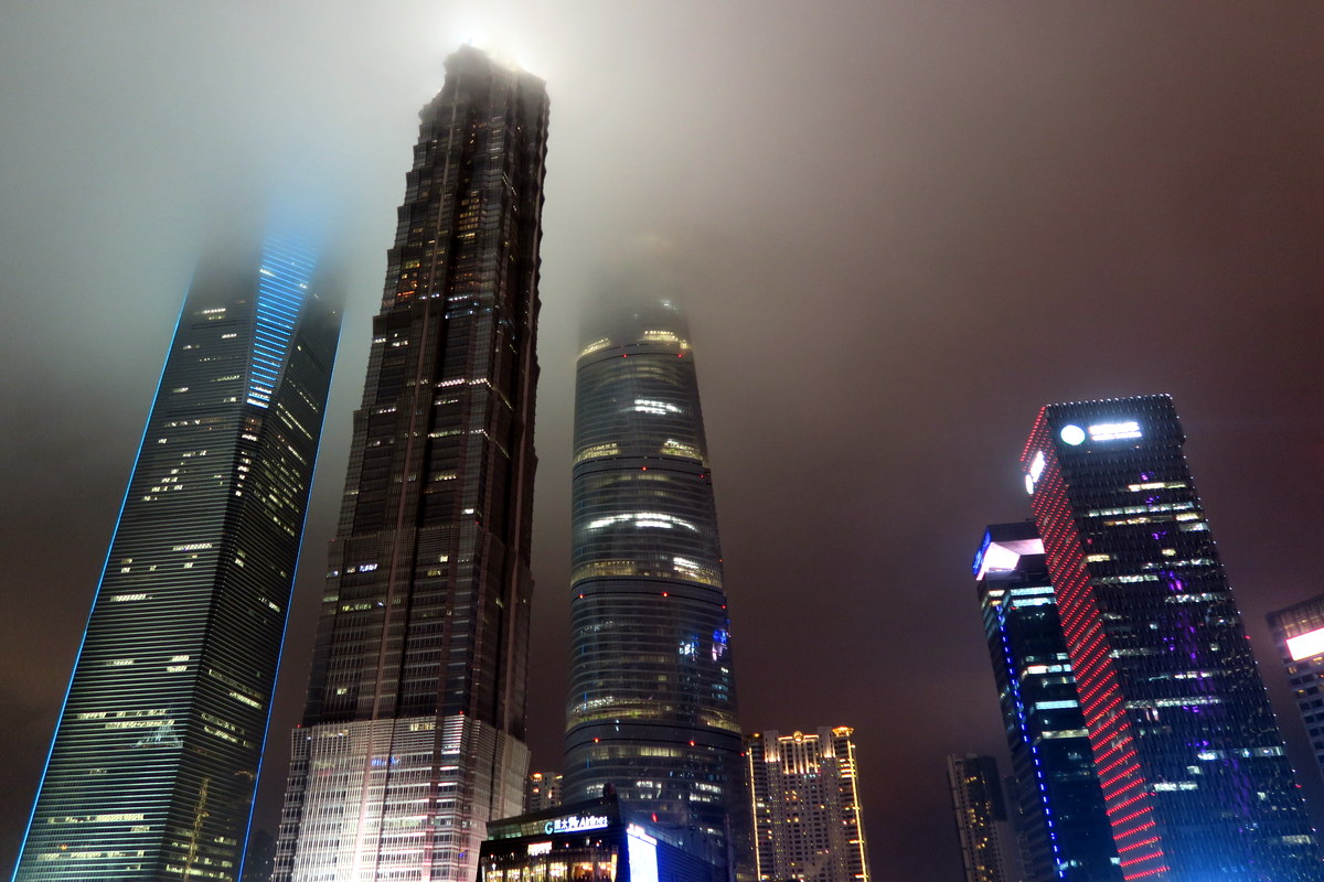 Мой рейс из Гонконга в Шанхай задержался на четыре часа, и вместо того, чтоб быть в отеле к девяти, я попал сюда в пол второго ночи. Туман, собственно виновник задержки, до сих пор густо укутывал город. Выше первых 20 этажей ничего не было видно. А то что виднелось походило на постапокалиптический фильм.