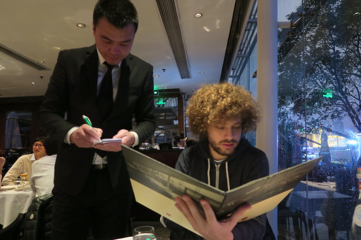 Ужинаем в каком-то итальянском с видом на реку. Предстоит неделя в китайской глубинке, накануне такого можно поесть и поприличней.