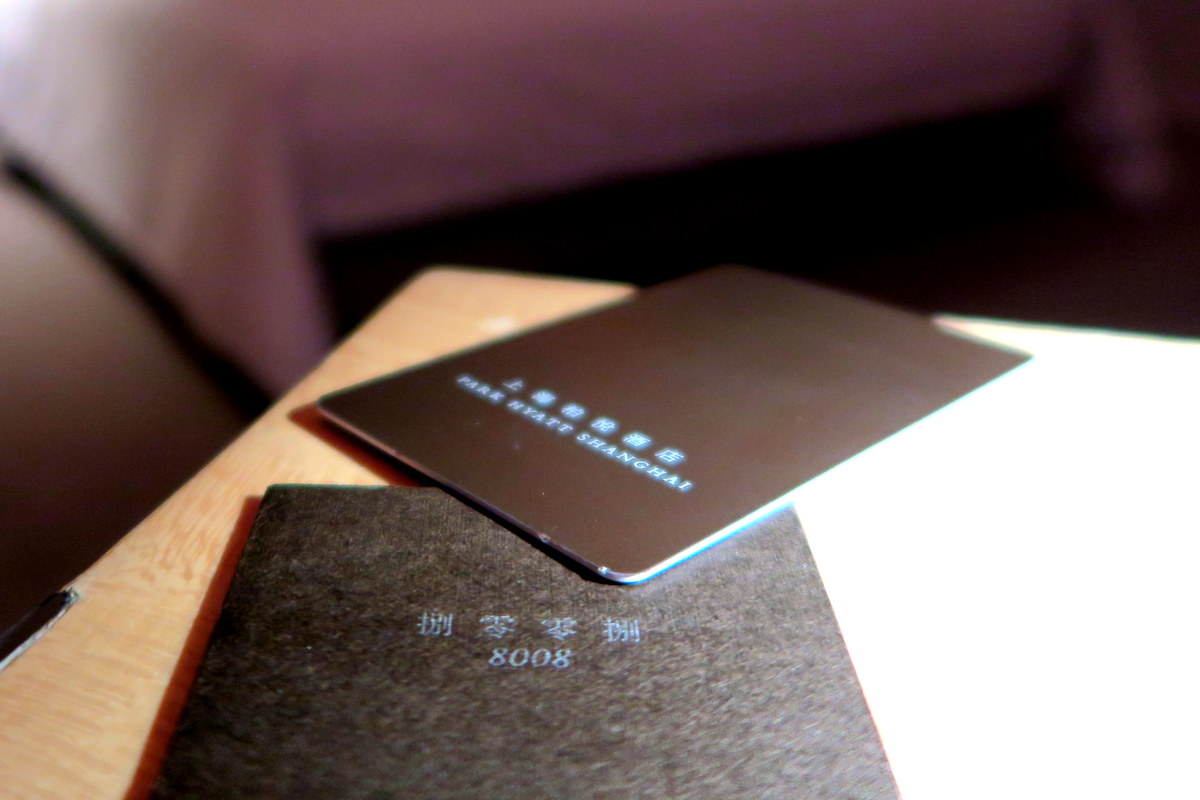 Один из признаков высшего класса: на конвертике для ключе-карты номер комнаты не написан от руки, а напечатан заранее. Мой номер - 8008 очень счастливый в китайском понимании, здесь цифру "8" любят. Отель Парк Хаятт находится на 80 - 89 этажах Октрывашки, так что здесь все номера на "8" начинаются, но мой ещё и заканчивается. И два нолика посередине - это тоже почти что "8"!