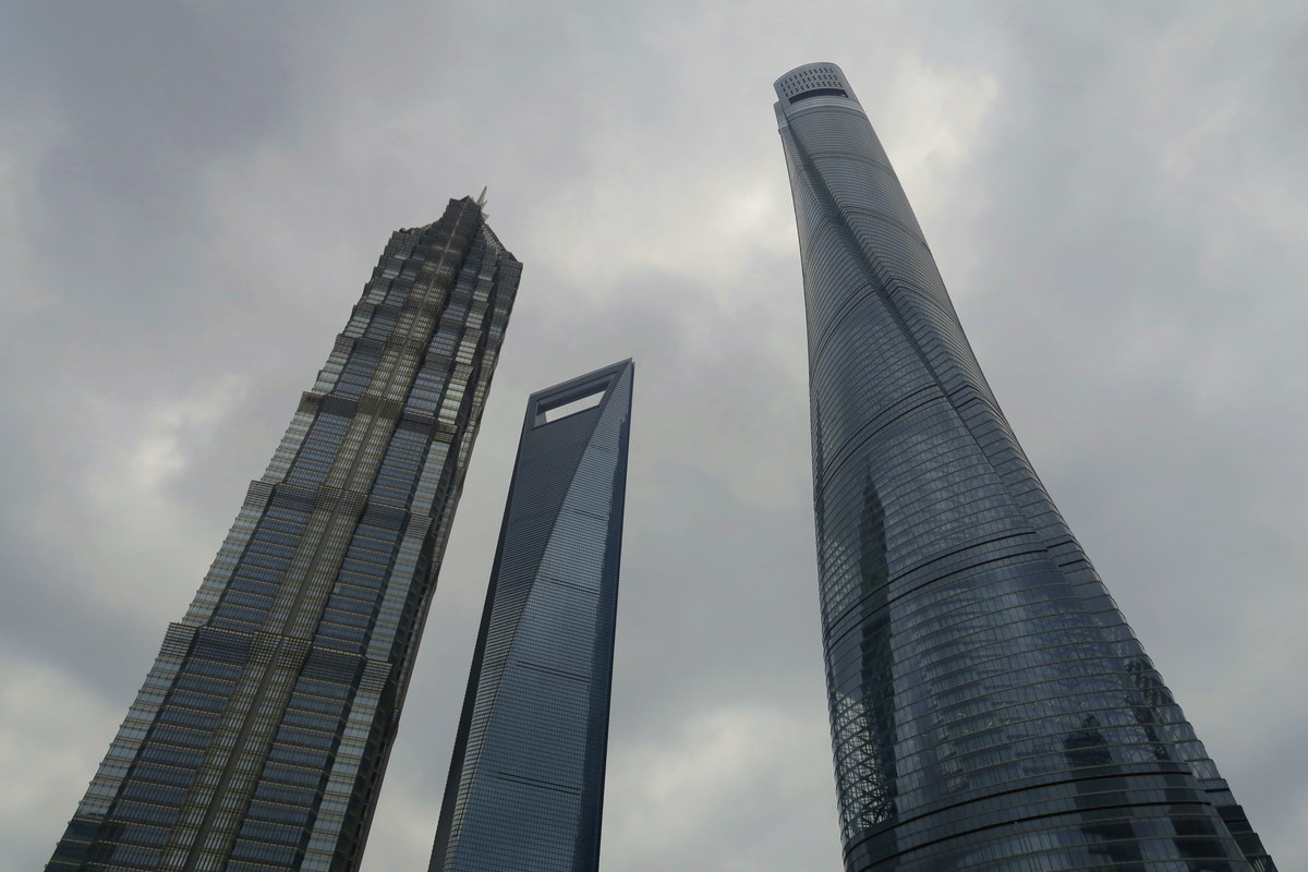 Наконец то можно нормально сфотографировать три главных небоскрёба Шанхая. Слева башна Цзинь Мао - 88 этажей, стала самй высокой в Шанхае в 1999. Посередине - наша Открывашка - 101 этаж, самый высокий небоскрёб Шанхая с 2008 года. Ну а справа - Шанхайская Башня, её ещё не открыли тогда, но она уже стала самым высоким небоскрёбом Шанхая (и вообще второй в мире). В ней 128 этажей.