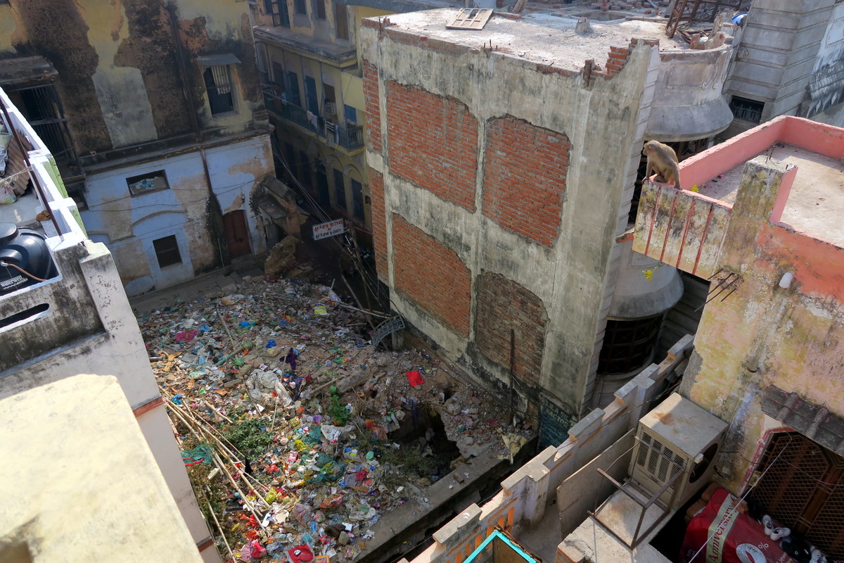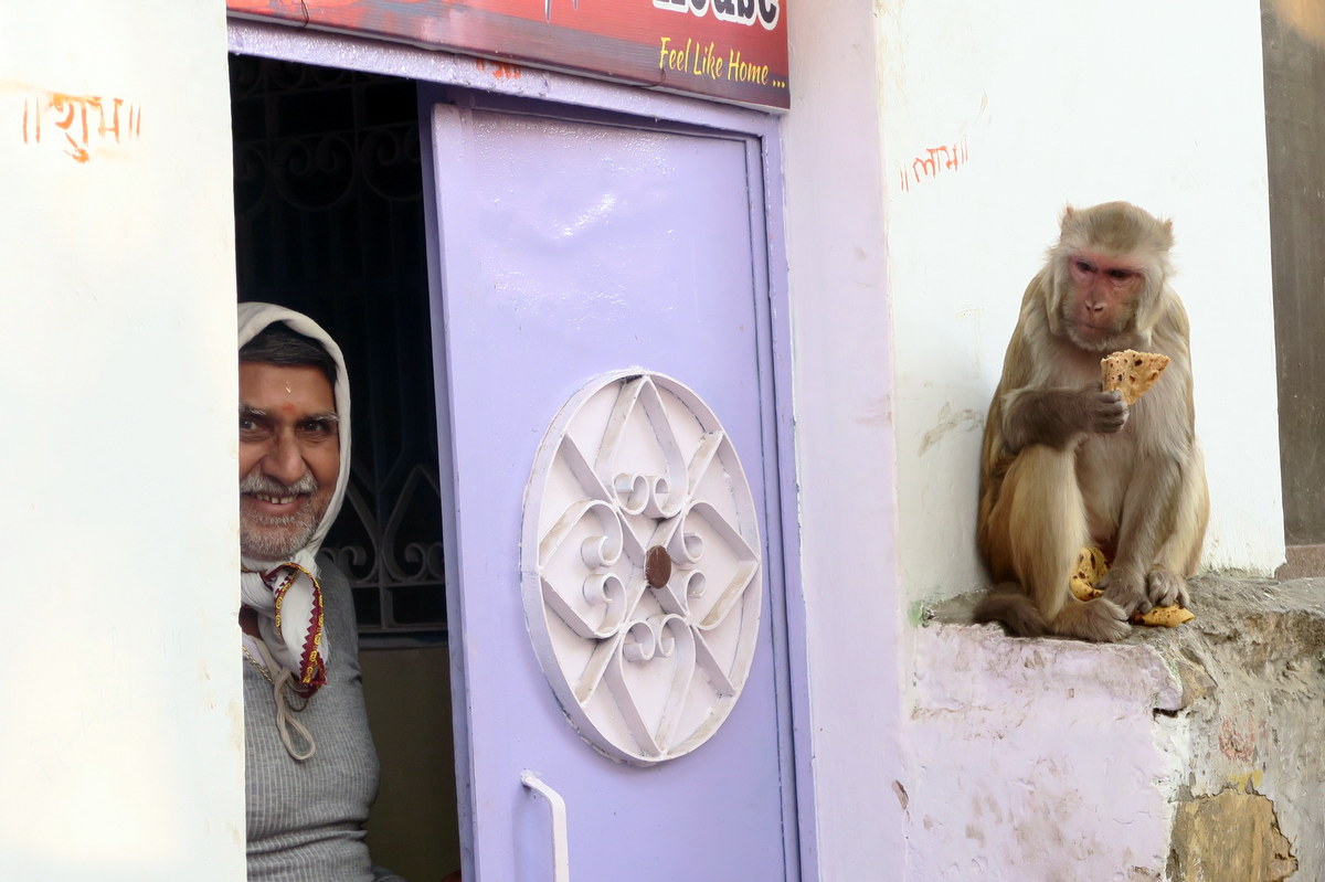 Да потому, что крышами в Варанаси правят обезьяны. Если не в клетке сидеть, они постоянно будут прибегать и таскать еду.