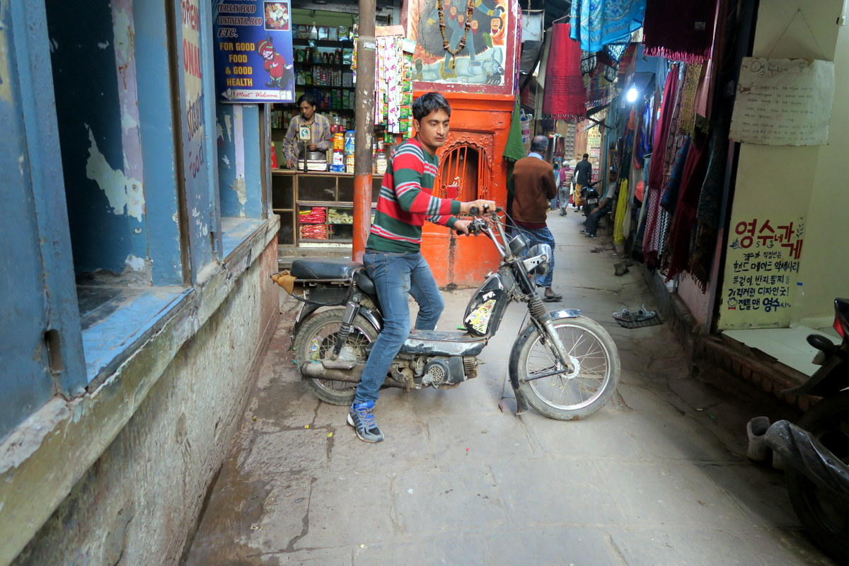 Эти боковые ходы выглядят вот так среди бела дня - узкими и тёмными. Когда ходишь по таким улочкам важно помнить, что по ним же гуляют коровы. Лишь очень бдительный турист сумеет перехитрить судьбу, и не вляпаься в коровью лепёшку, которую ещё не успели собрать бедняки.