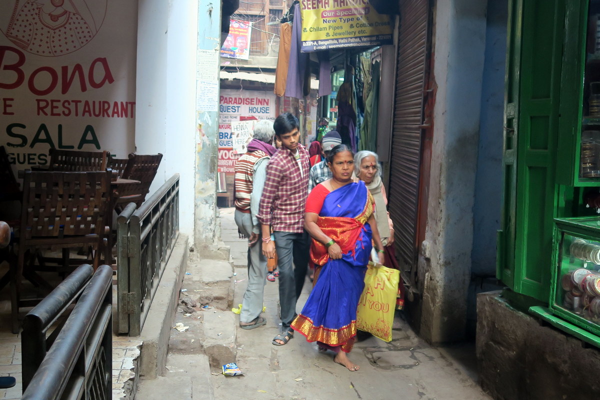 Как во многих древних городах Индии, в старый город не пускают четырёхколёсный транспорт. В Варанаси старый город тянется вдоль берега реки. Параллельно с гхатами проходит и главная улица старого города. Она узкая и пёстрая, по её бокам находятся магазинчики и кафешки. Иногда попадаются арки с проходами на другие улицы.