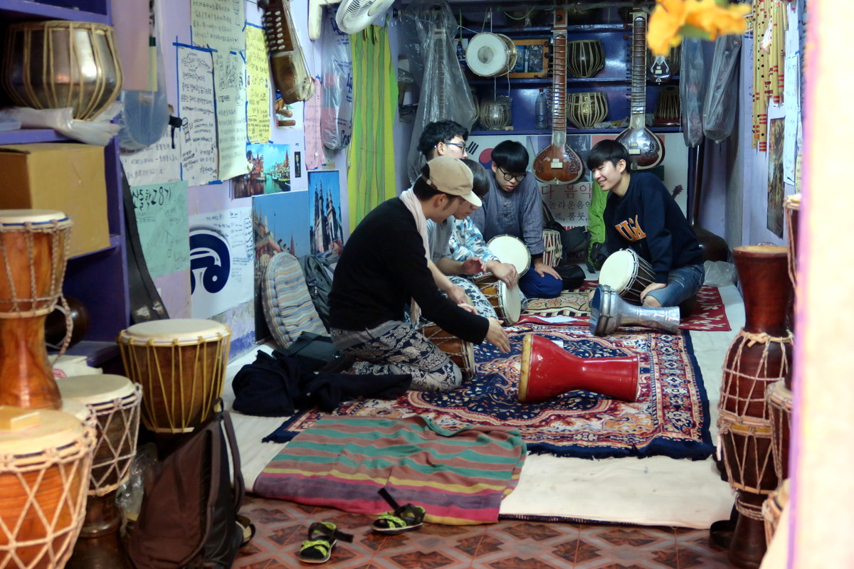 В кафе и магазинчиках полно азиатских туристов. Вот например группа оккупировала лавку ударных инструментов, и устроила drum-кружок.