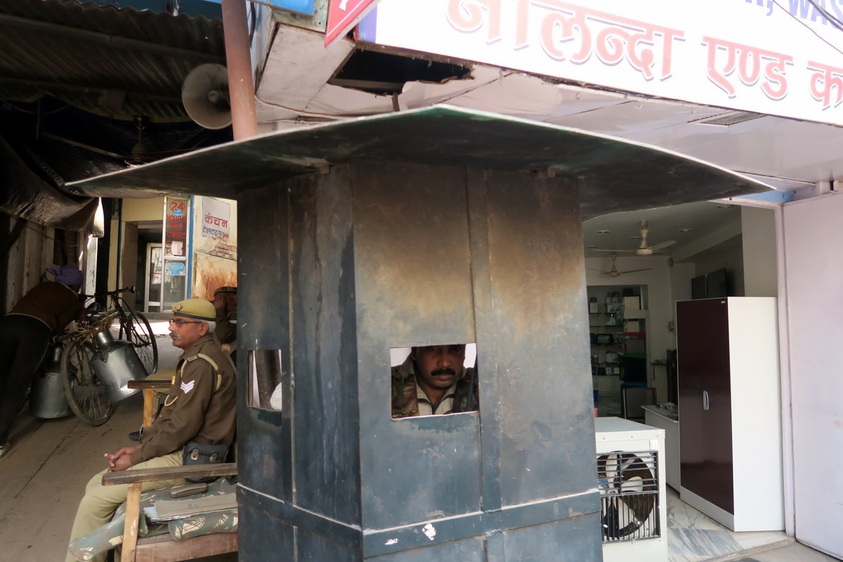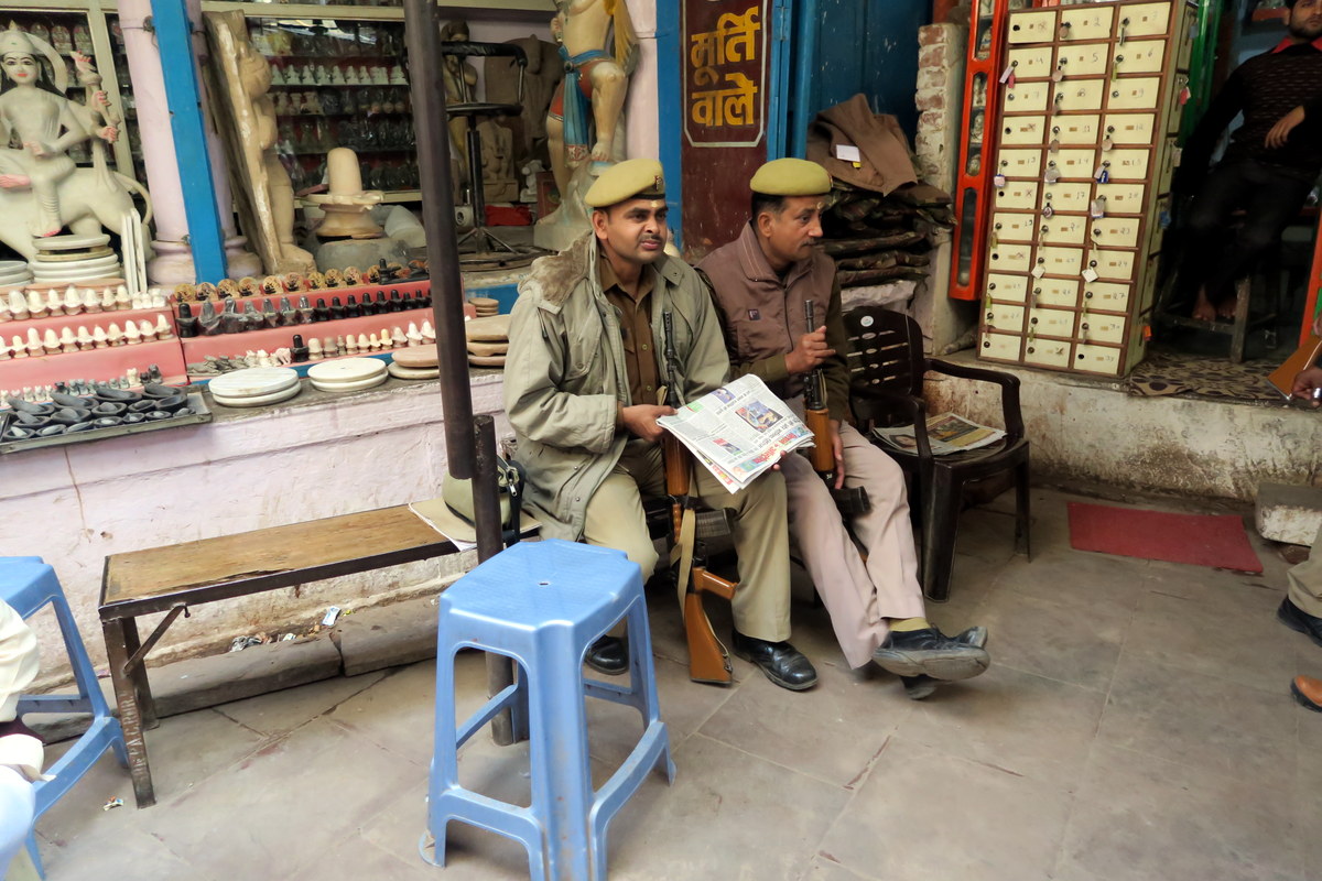 На улицах Варанаси много полицейских. Причём они все одеты как солдаты, в защитные цвета.