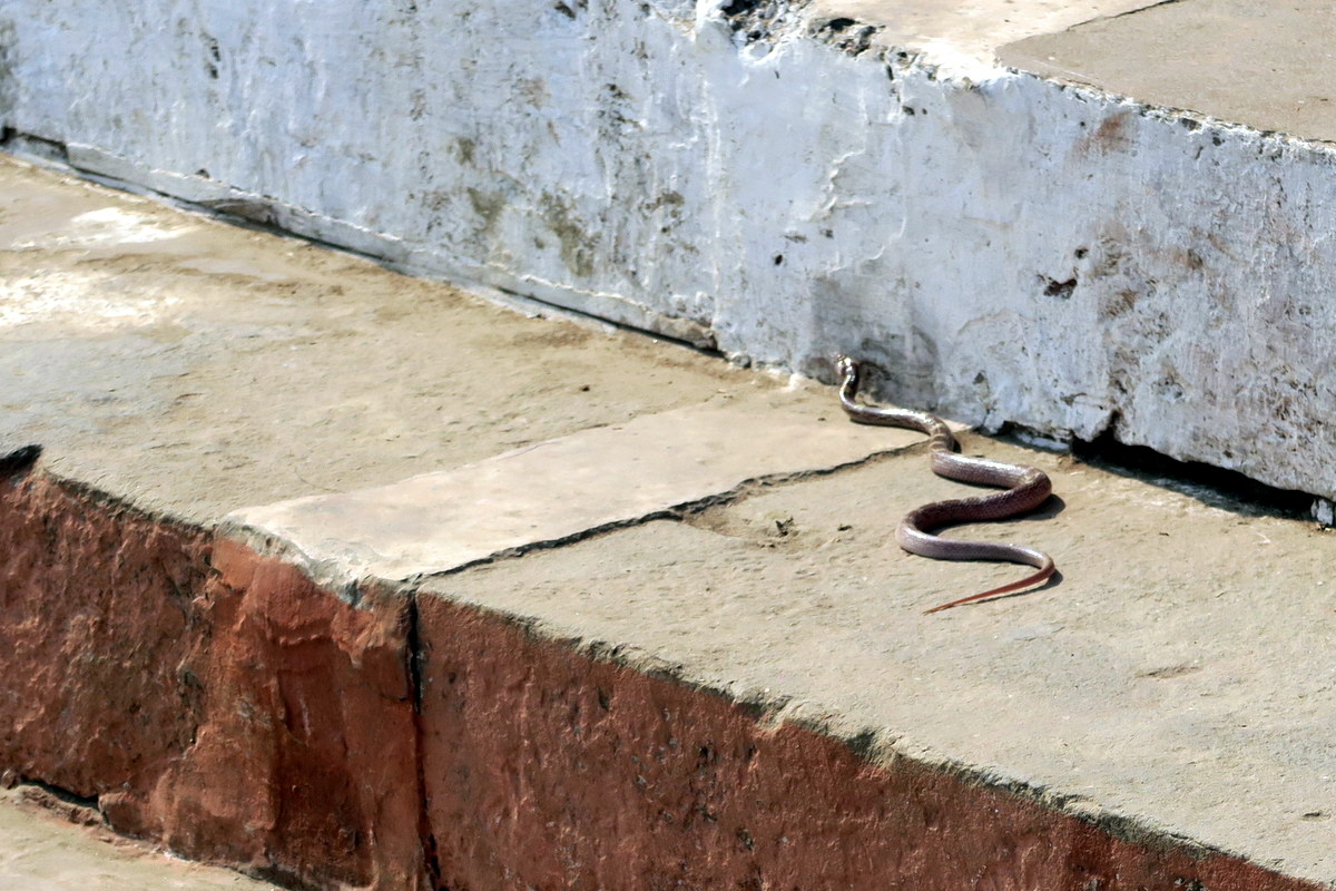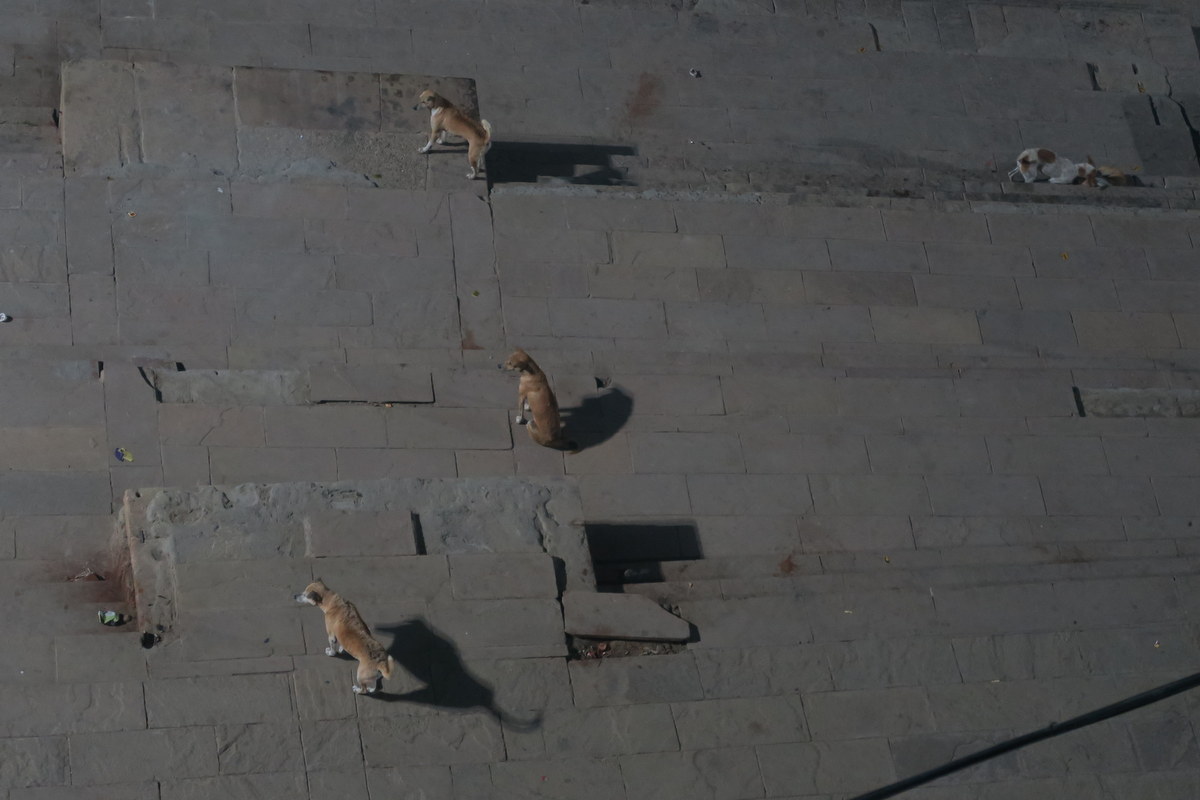 Это на городских улицах обезьяны за главного. А вот внизу, на самих гхатах, территория принадлежит бездомным собакам. Они весь день валяются на гладких камнях, делая вид, что дремлят. Но стоит подойти чужаку, как все окрестные собаки начинают на него жестого лаять.
