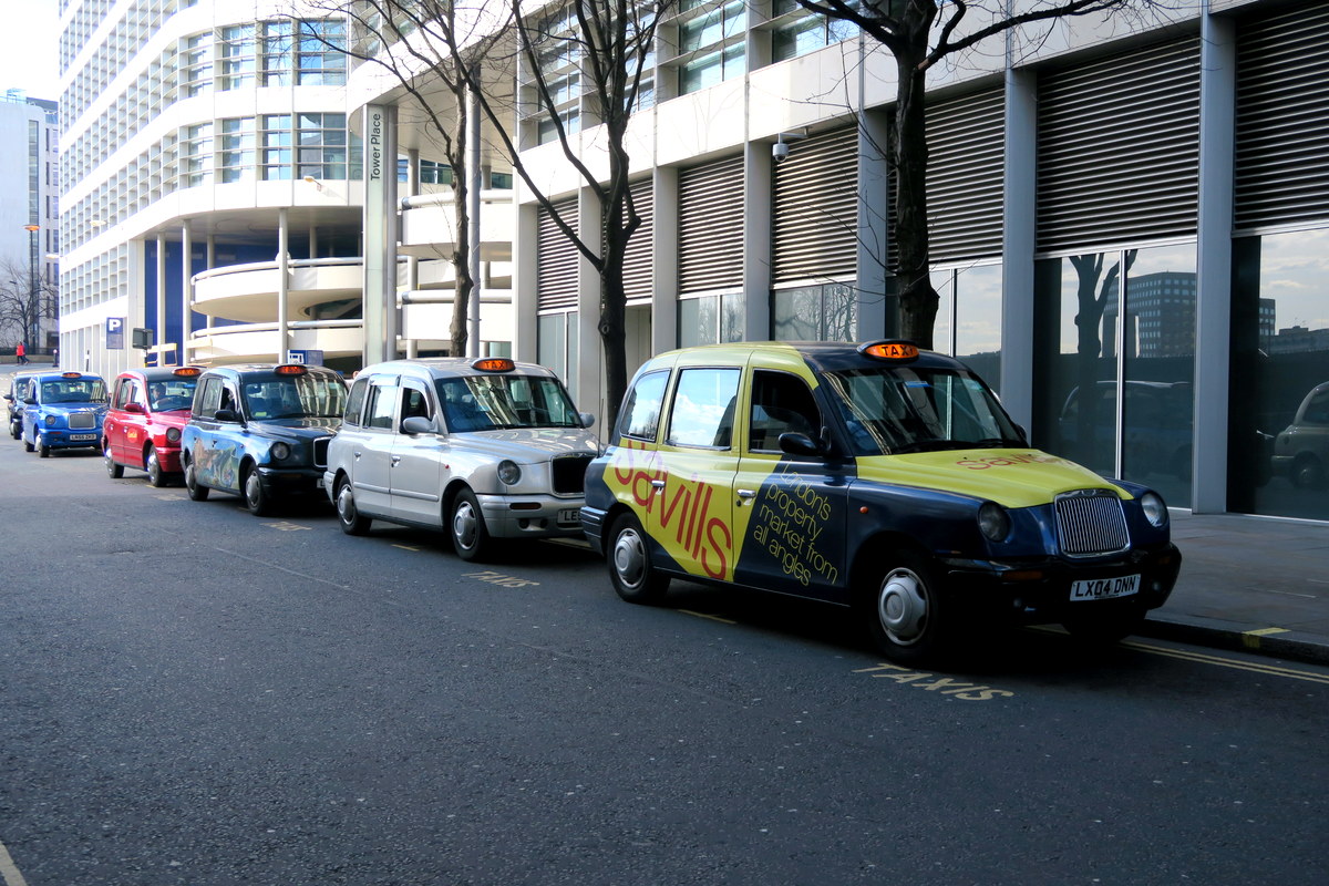 Жители лондона называют свои такси "чёрными кэбами" ("black cabs"). Это прозвище пошло ещё с XIX века, когда кэбы были повозками, а водители кучерами (помните, на таких Шерлок Холмс любил кататься по своим делам.) Несмотря на чёрный в старом названии, машины могут быть любого цвета. Иногда на них клеют яркую рекламу.