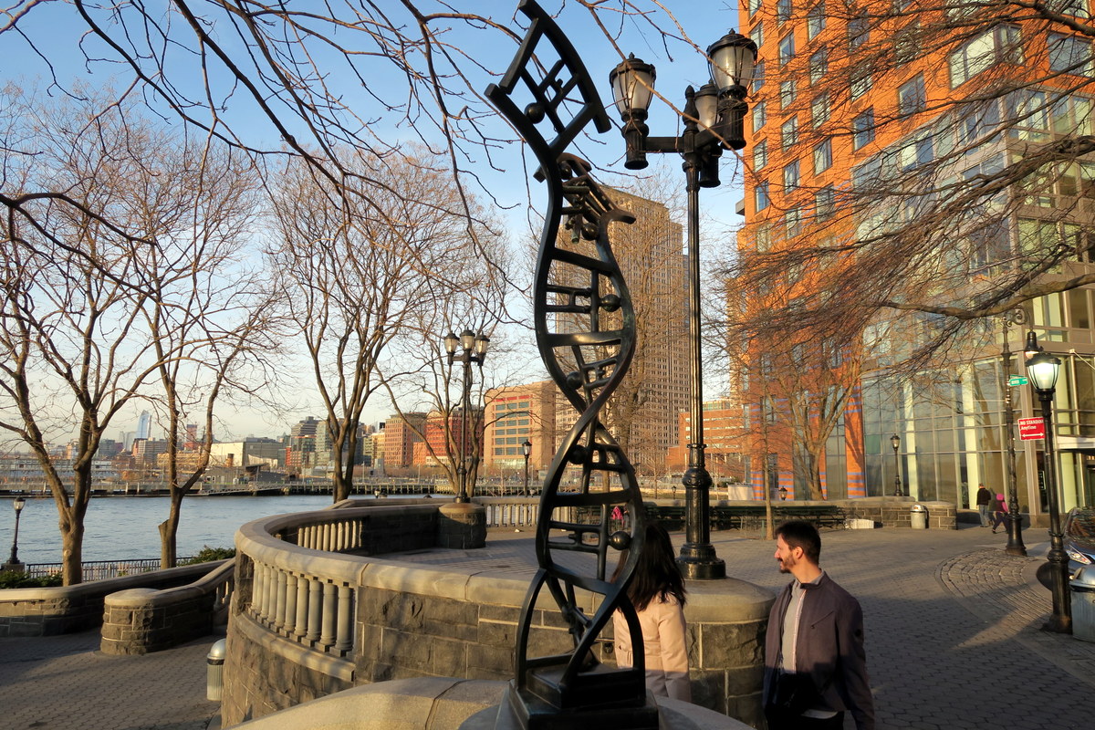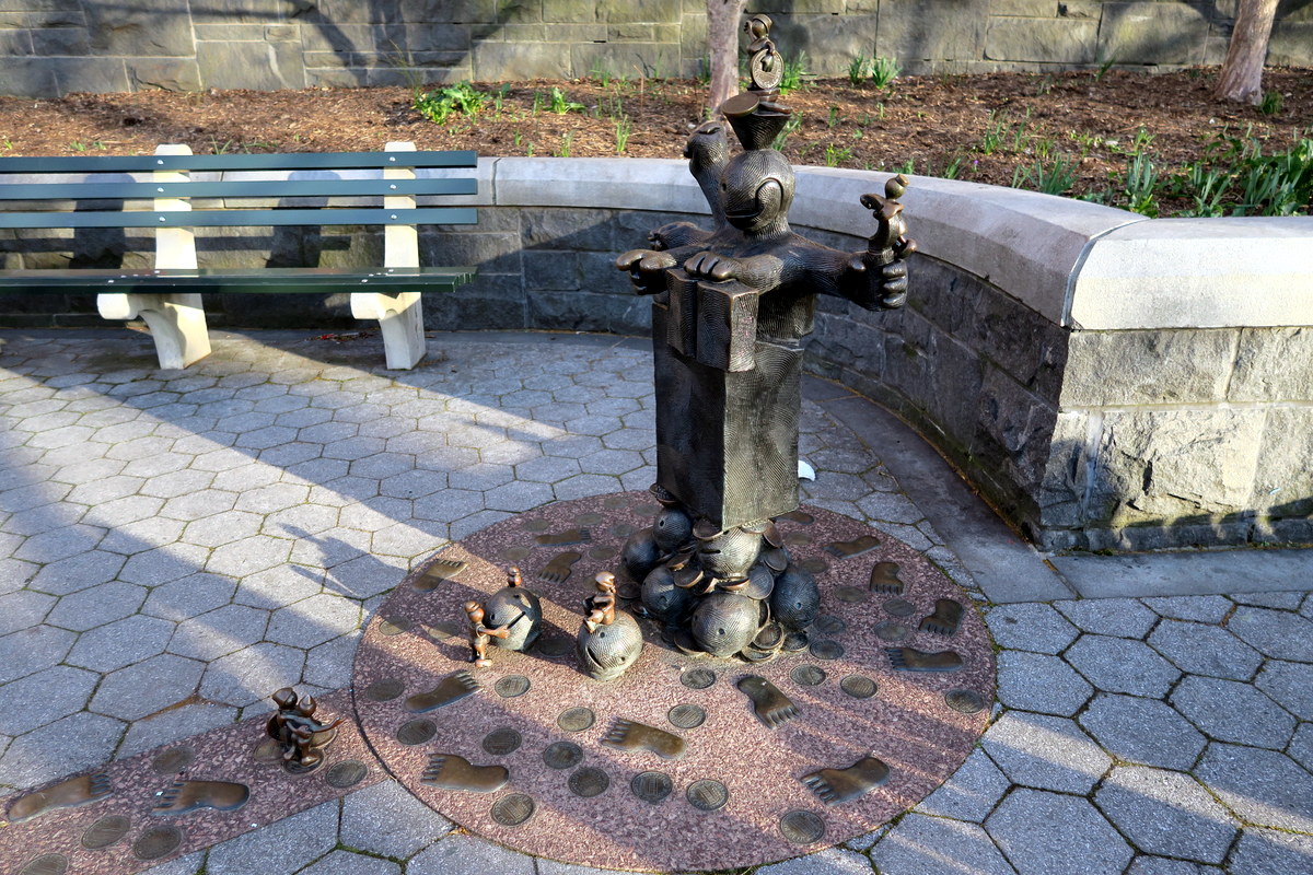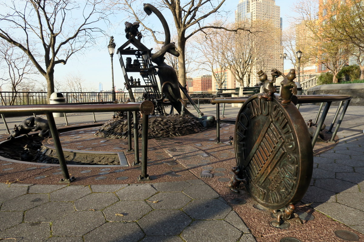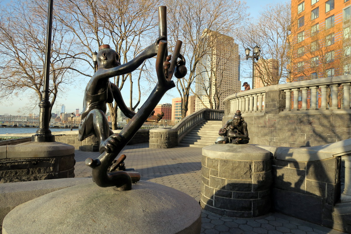 Но вернёмся к работам Тома Оттернесса. Самый крутой по-моему его проект тоже находится в Нью Йорке. На западном берегу нижнего Манхэттена находится Рокфеллер Парк, где в 1992 году скульптор сделал масштабную серию работ под названием The Real World (Реальный Мир).