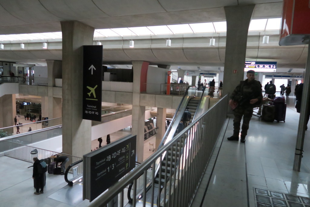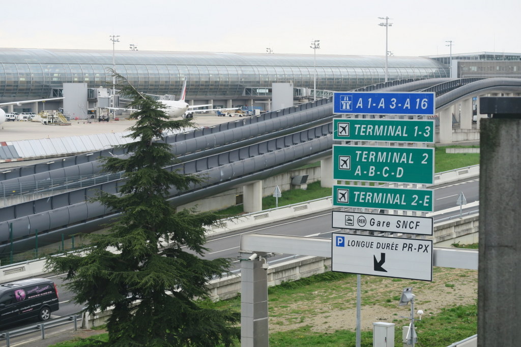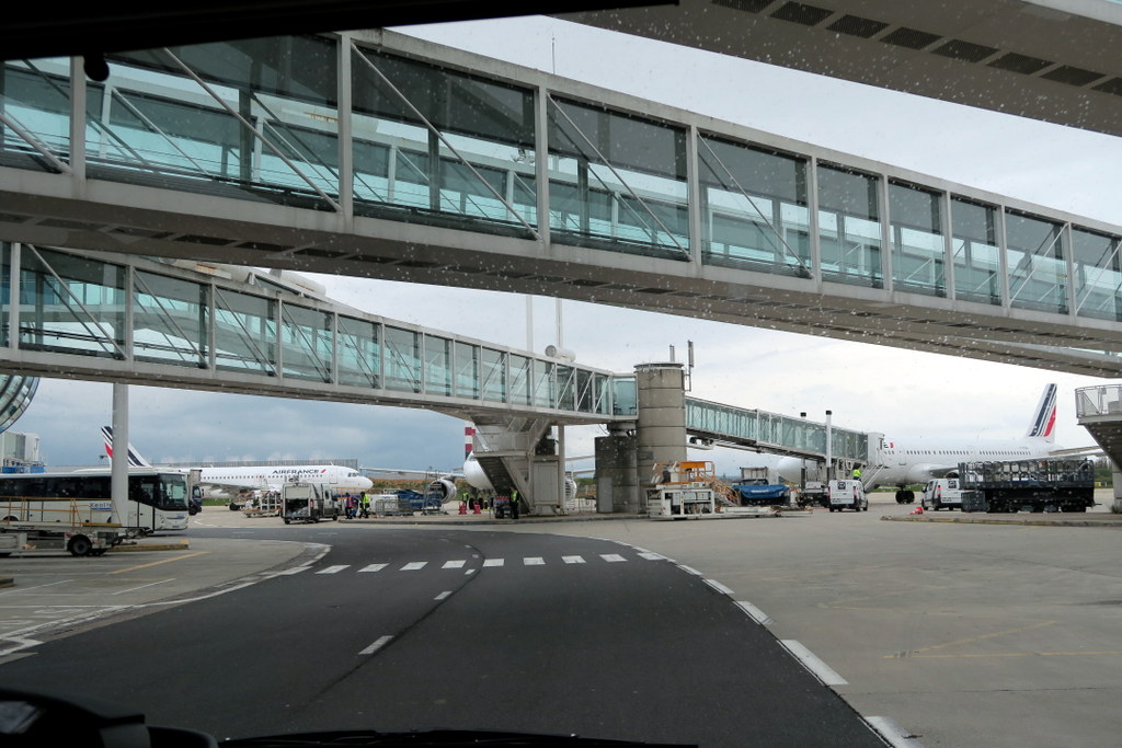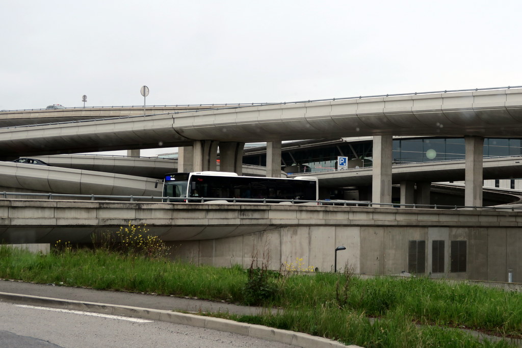 Автобус - главный вид транспорта, связывающий терминалы и гейты Де-Голля. Белые дизельные Мерседесы бегают взад вперёд по огромной территории аэропорта.
