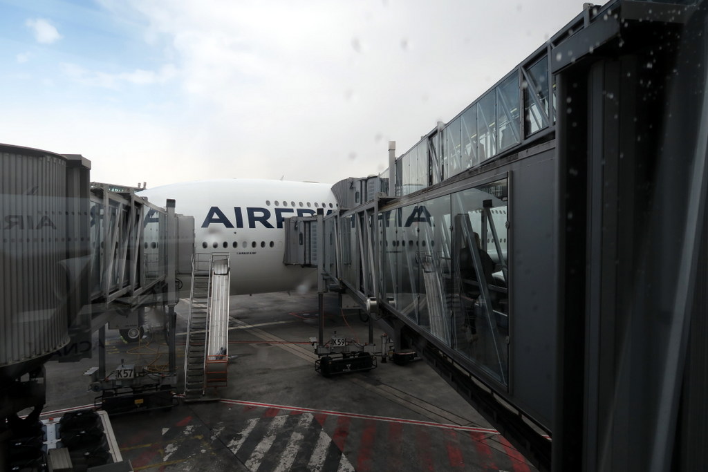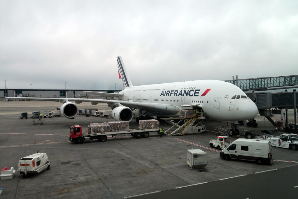 Одно преимущество Де-Голля, это возможность посмотреть на то, как обслуживают Аэробус A380. Air France была первой европейской авиалинией, которая получила огромный двухэтажный лайнер, и они решили по полной оборудовать свой аэропорт, чтоб быстро загружать в него 800 пассажиров. Думаю, тот факт, что штаб-квартира Аэробуса находится во Франции тоже не помешал.