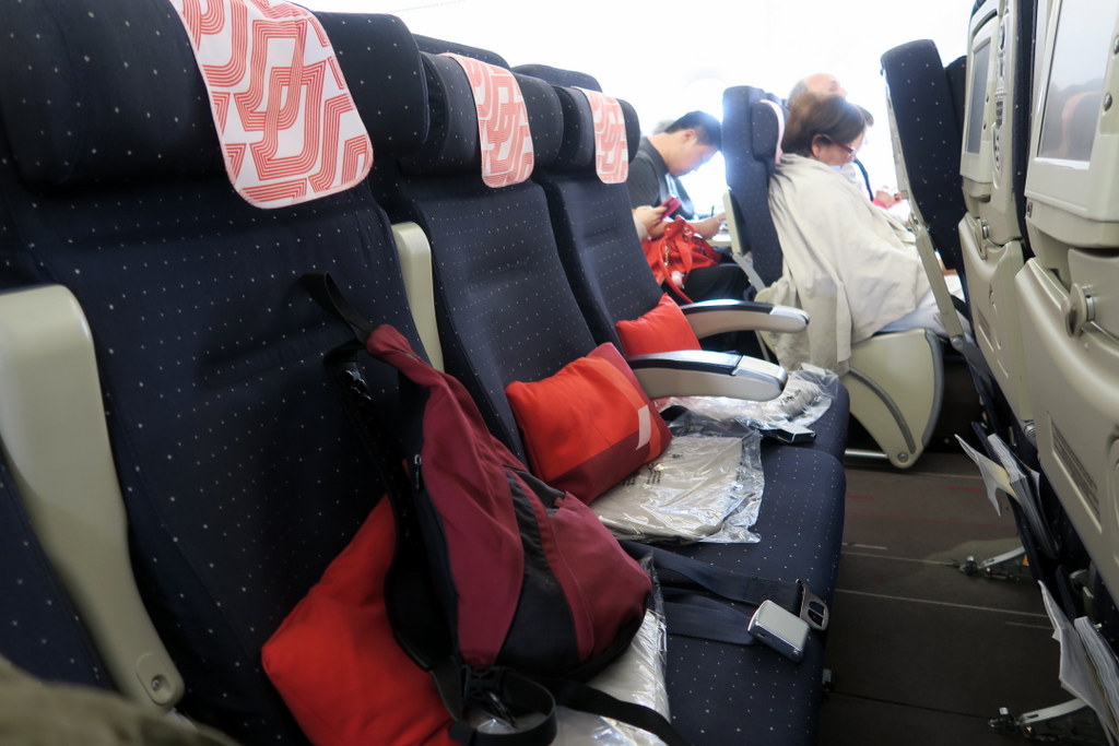 Но всё же в этот раз мне повезло. Я заранее выбрал себе перспективное место, так чтоб не было соседей, и в этот раз моя стратегия сработала - мне одному достался ряд из четырёх сидений. Можно было развалиться во весь рост - это даже просторней, чем если лететь бизнес-классом!