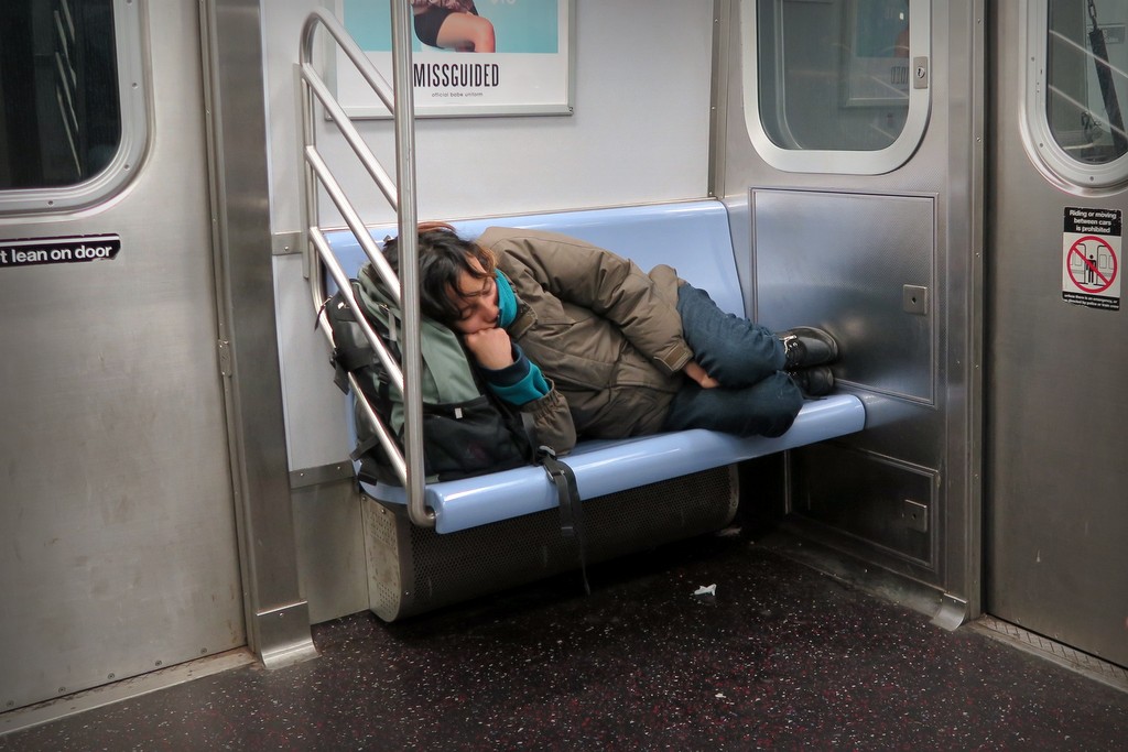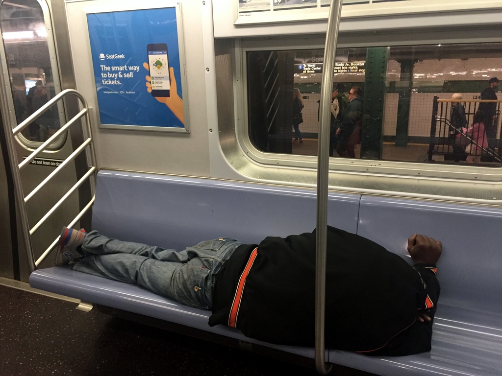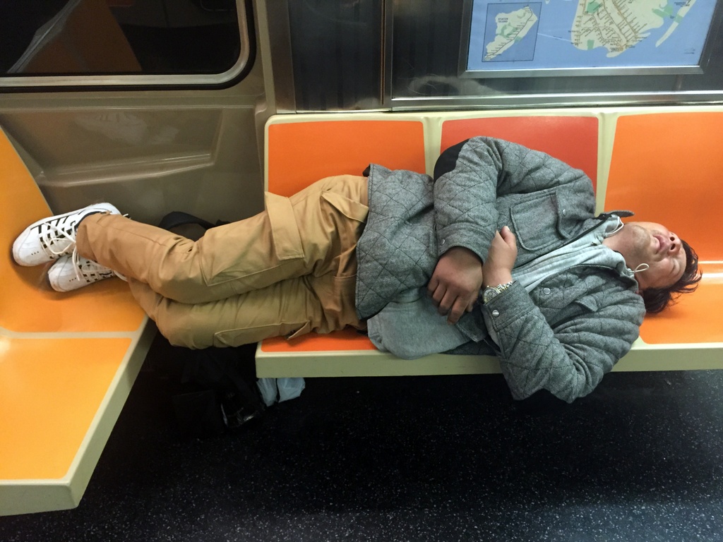 Чтоб я в самолётах так сладко спал, как эти ребята на жёстких сиденьях нью-йоркского метро!