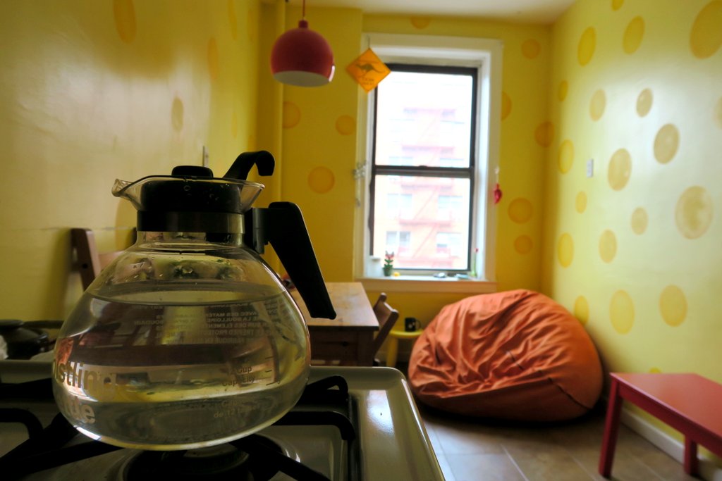 А Тоня плетётся в кухню, ставит чайник и плюхается досыпать на огромном оранжевом пуфике в углу. Это даёт ей ещё от трёх до семи минут сна. Чайник вскипает со свистом, и окончательно будит Тоню, которая делает себе чай, собирается и выбегает из дому.