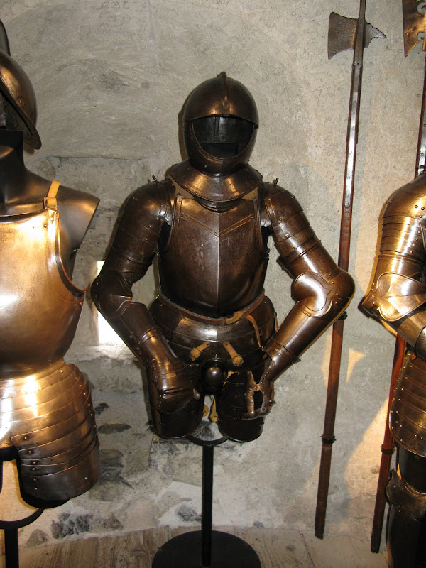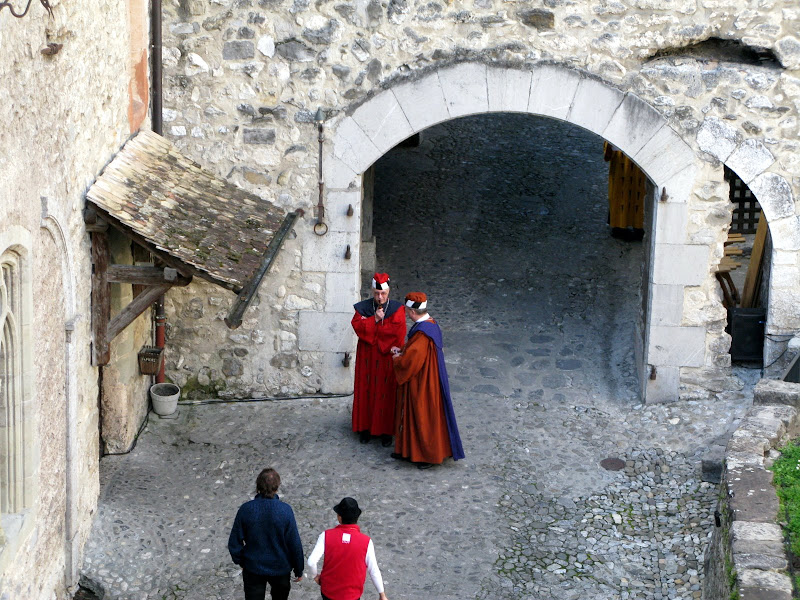 Посмеявшись вдоволь над комичными дядьками в лягушачих костюмах, мы всё же осмелились проникнуть внутрь замка. Подкупка стражи обошлась нам по двенадцать франков с человека, но зато в нагрузку мы получили путеводитель на русском языке.