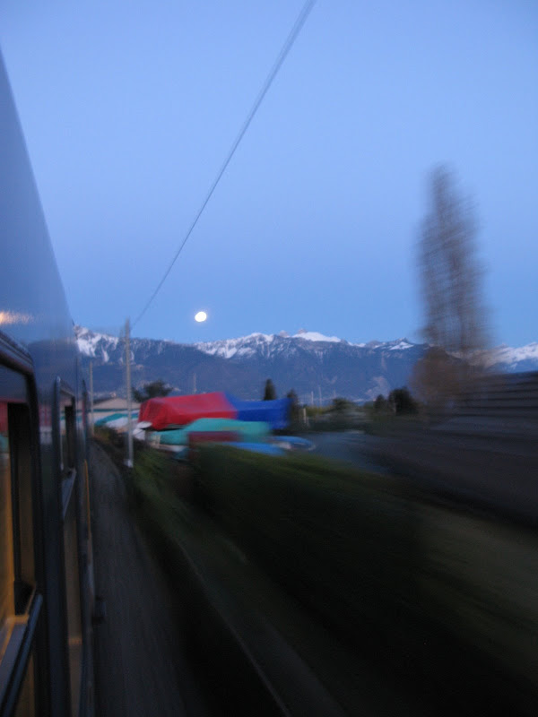 От Монтрё, обратно мы ехали опять на электричке, а за окном светила как белое блюдце полная луна. Правда пойди её сфотографируй из окна поезда...