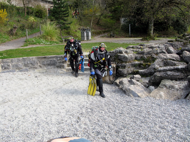 Пока мы изучали замок снаружи, выискивая лучший подход, появились водолазы. Они были грузные, и с очень немецкой внешностью. Зайдя в по грудь в воду, они минуты три пыхтели натягивая ласты.