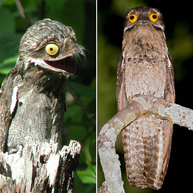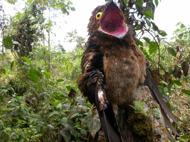 Как можно догадаться по размеру глаз, Потоо - ночные птицы, днём предпочитают спать, именно поэтому так трудно найти фотографии их с открытыми глазами.