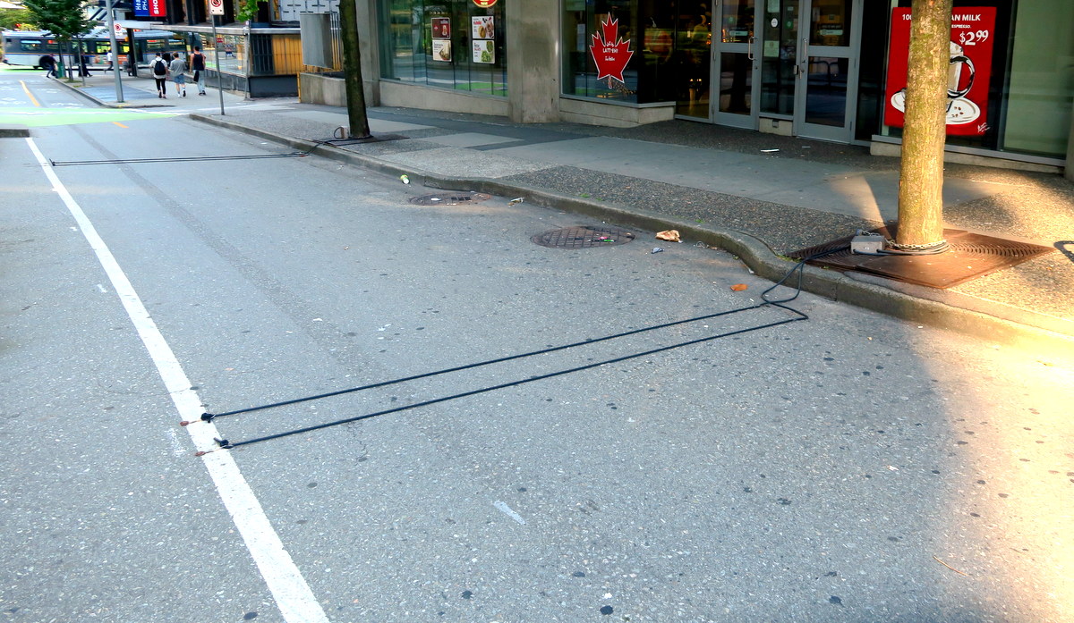 Показывая нам Ванкувер, Айзик обратил моё внимание на вот такие странные растяжки выложенные посреди дороги. Как будто мультипликационный злодей выставил свою комичную ловушку для ничего не подозревающей жертвы, и теперь только ждёт её приближения, чтоб рывком натянуть эту верёвку и споткнуть её.