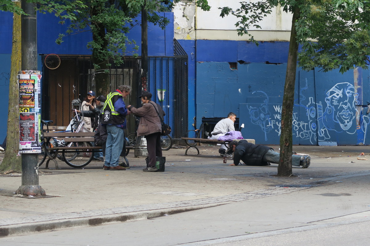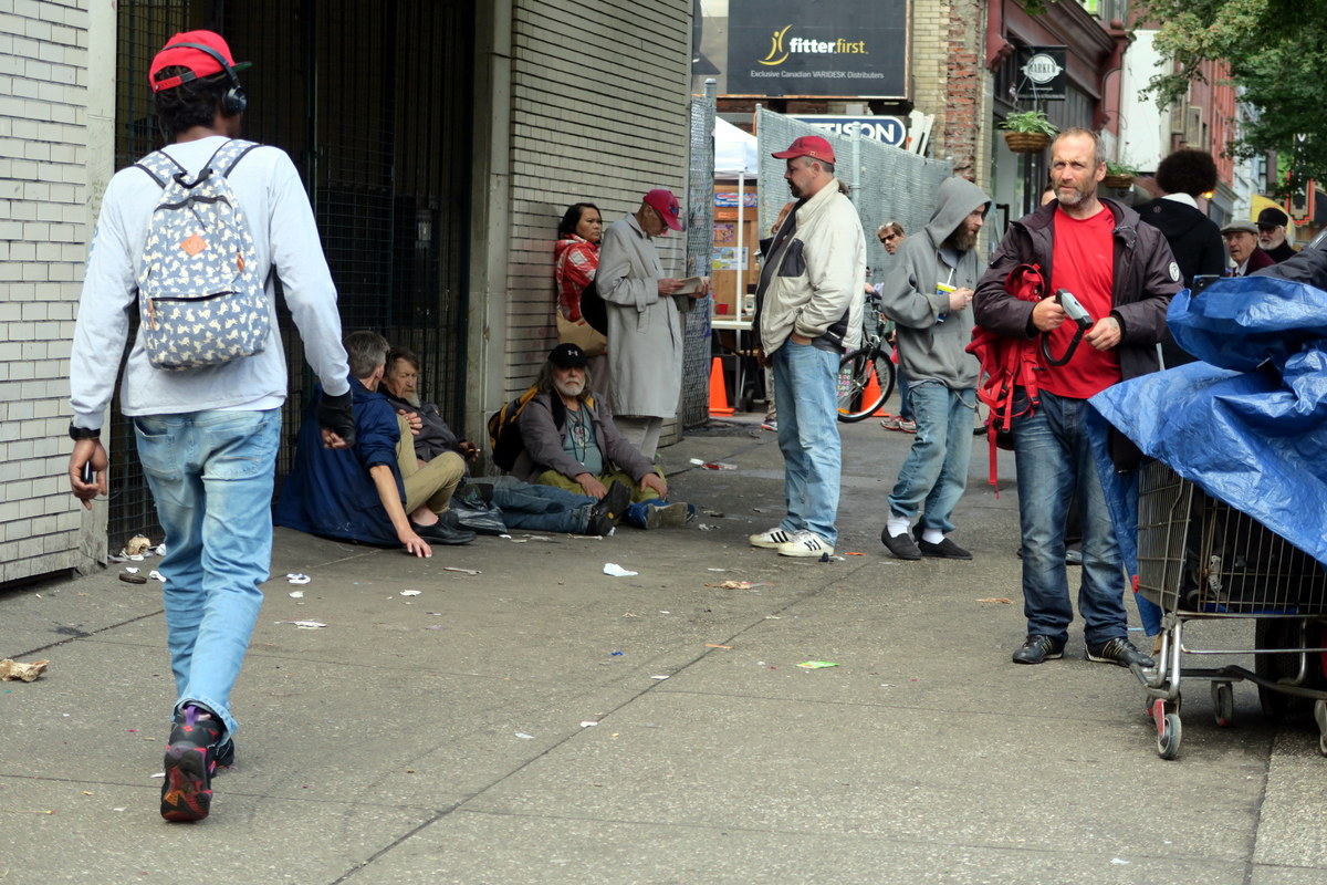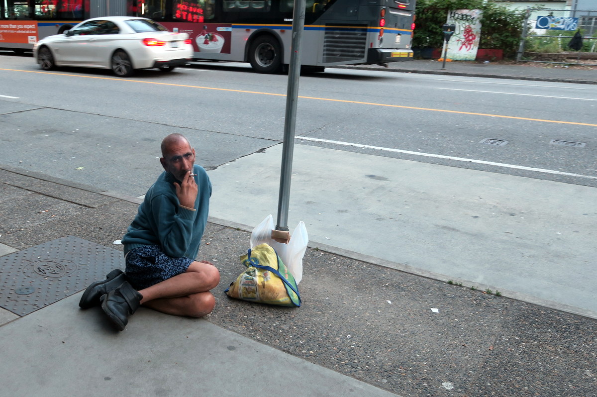 Есть в центре Ванкувера такой район - на стыке старого, причёсанного Газтауна, и не такого чистого, но очень активного Чайнатауна. Честно говоря, даже не знаю, как он называется, но центральная его улица - Hastings. Здесь от каждого дома, из каждого окна и дверного проёма веет общим неблагополучием. Я называю его ванкуверским Бомжтауном.