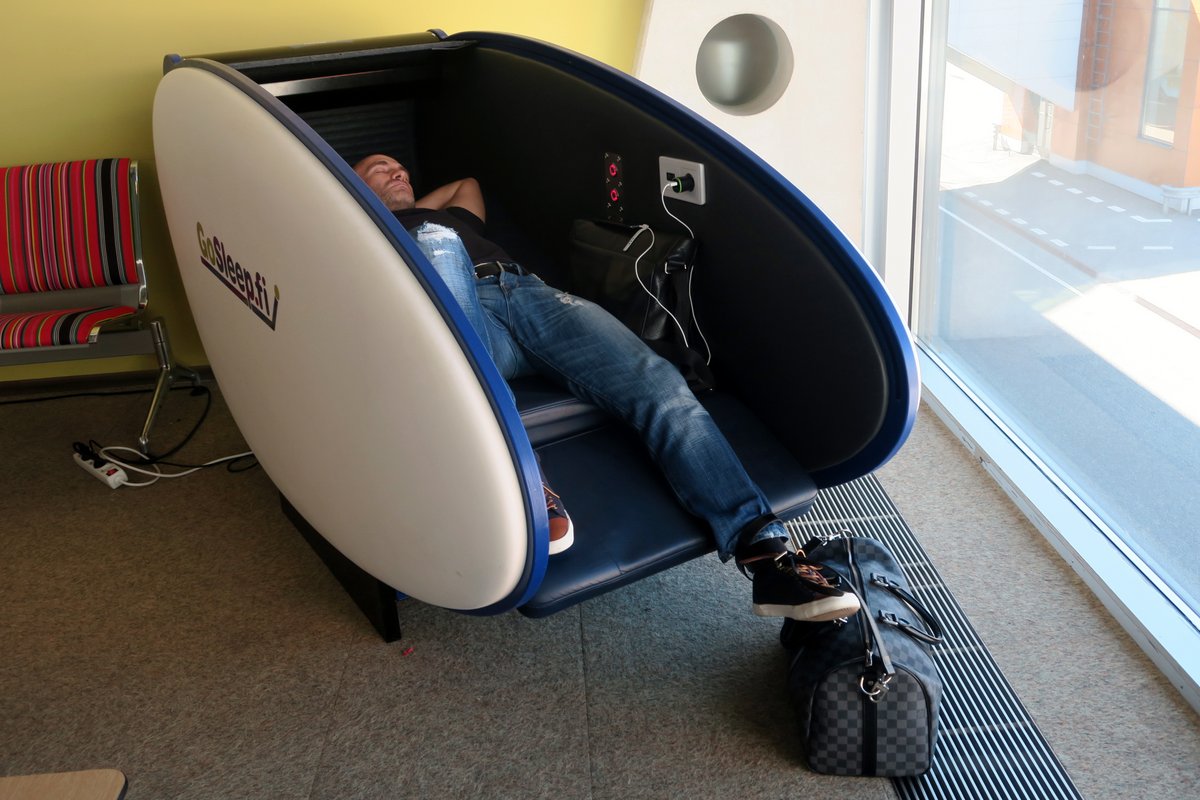 Вместо небольшого отеля, как в Стокгольме, тут стоят вот такие кресла-раскладушки, в которых ожидающий пассажир может вздремнуть.