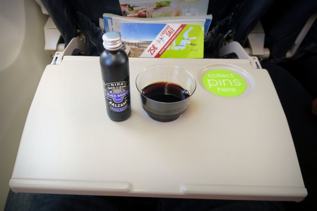 Раз летим в Ригу, надо заказать на борту Рижскик Бальзам. Никогда раньше его не пробовал, хоть много слышал. У Air Baltic он стоит не многим дороже бутылочки воды! Штука на любителя (то есть мне понравилось, а Тоне нет).