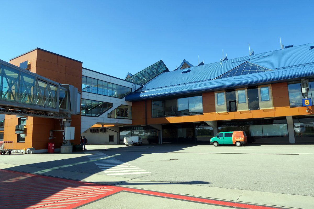 До Таллина кстати совсем не далеко - полёт всего пол часа длится. Садимся возле красивого рыжего терминала. Он относительно новый, и очень симпатичный.