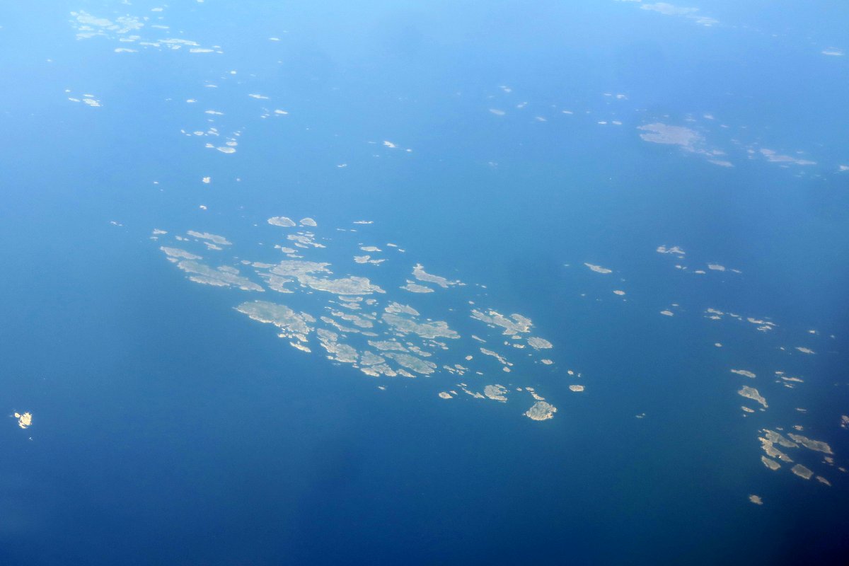 Летим над Балтийским Морем. Возел берегов Швеции куча маленьких островков. Красиво!