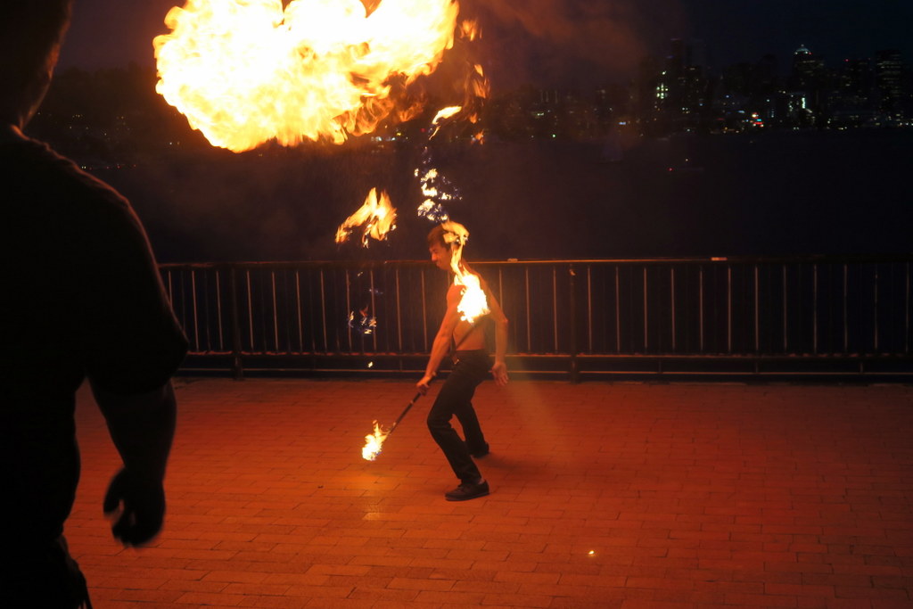 Потом вышел его более гибкий товарищ, и зажёг свой посох ярким клубом пламени.