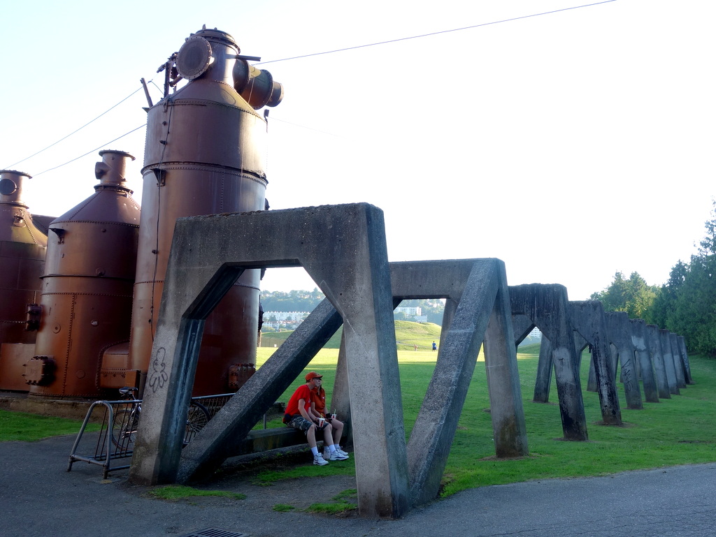 Остатики индустриальной промышленности, непонятные коричневые агрегаты, прекрасно гармонируют с зелёными газонами. Кстати, по газонам тут можно не только ходить, на них можно сидеть, и даже валяться.
