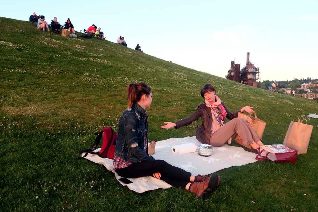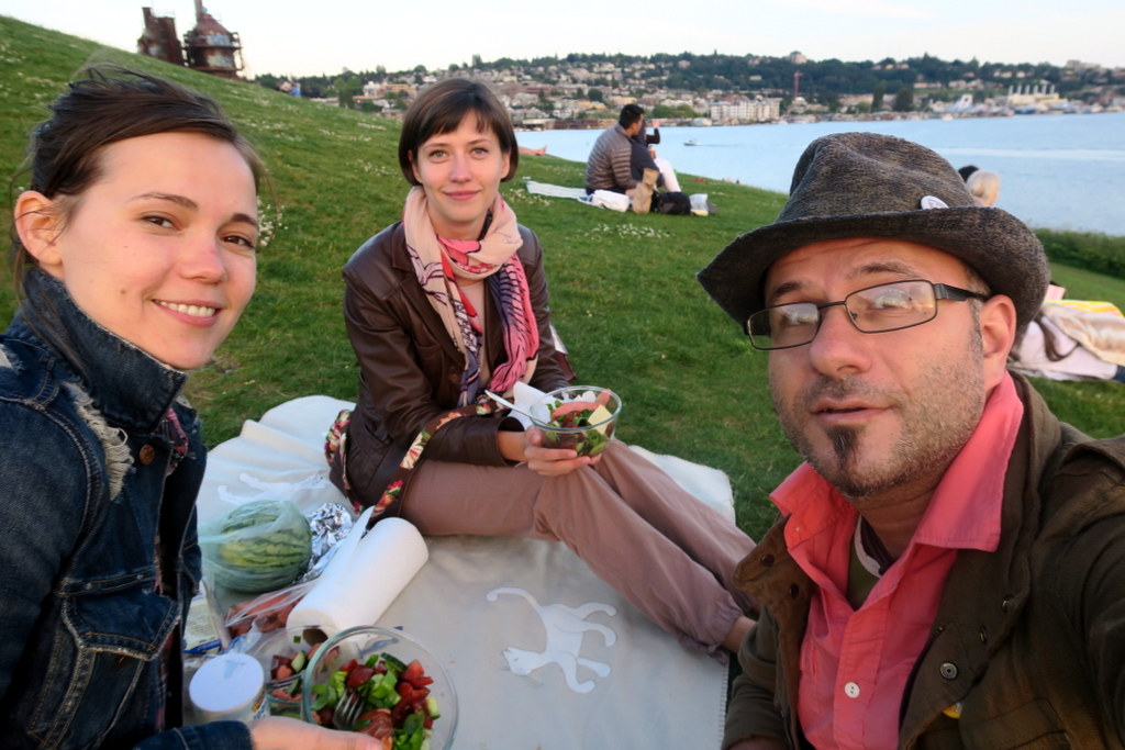Когда мы с Юлей приехали на один день в Сиэтл после посещения Ванкувера, нас тут встретила Лена. Лена живёт в Сиэтле уже несколько лет. Через пару недель она присоединиться ко мне с Тоней в Японии, и мы пойдём выпивать в микроскопических барах Голден Гая. А сейчас, она приготовила к нашему приезду отменный пикник, чтоб мы могли насладиться приятным сиэтлским вечером на свежем воздухе.