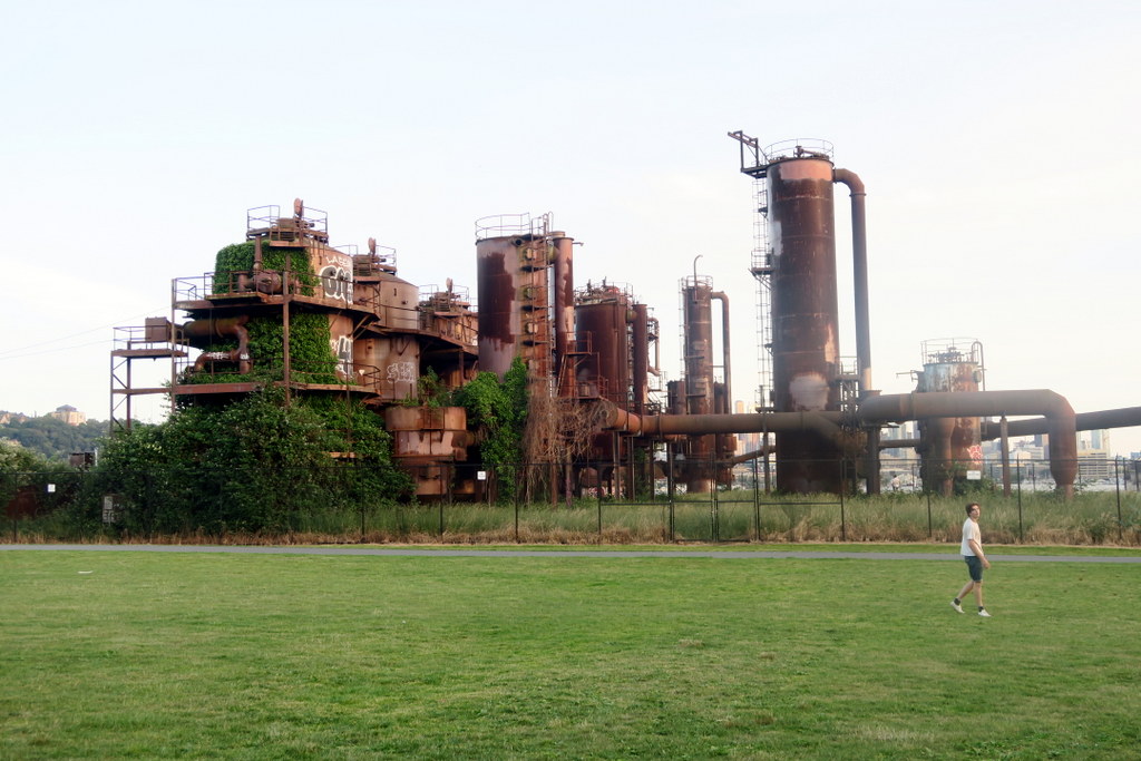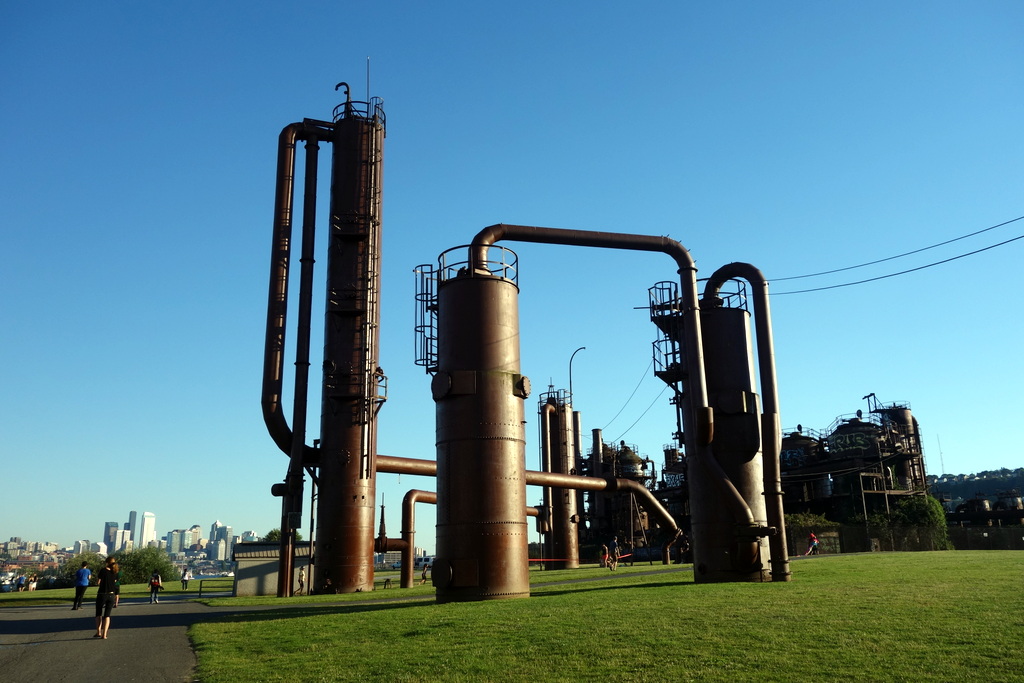 Сиэтл - город у воды. Он не только находится на берегу моря, в нём так же есть несколько озёр. На берегу одного из них, озера Юнион, находится очень необычный Парк Газозавода или Gasworks Park. Из-за огромных стимпанковских сооружений посередине, парк напоминает декорации какого-нибудь пост-апокалиптического фильма.