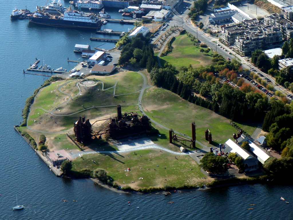 История парка не так занимательна, как история самого Сиэтла, поэтому перескажу её очень быстренько. В самом начале XX века, город активно развивался, и некоторые думали, что берега красивого озера - прекрасное место для заводов и прочих индустриальных объектов. На самом живописноме месте на берегу решили построить газозавод.