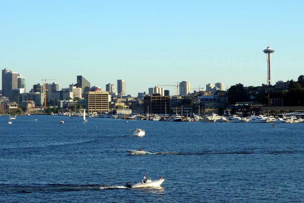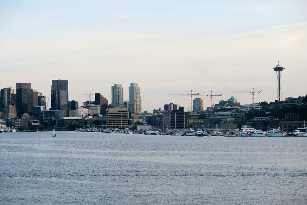 Через воду отлично видны небоскрёбы делового центра, и знаменитая башня Спейс-Нидл.