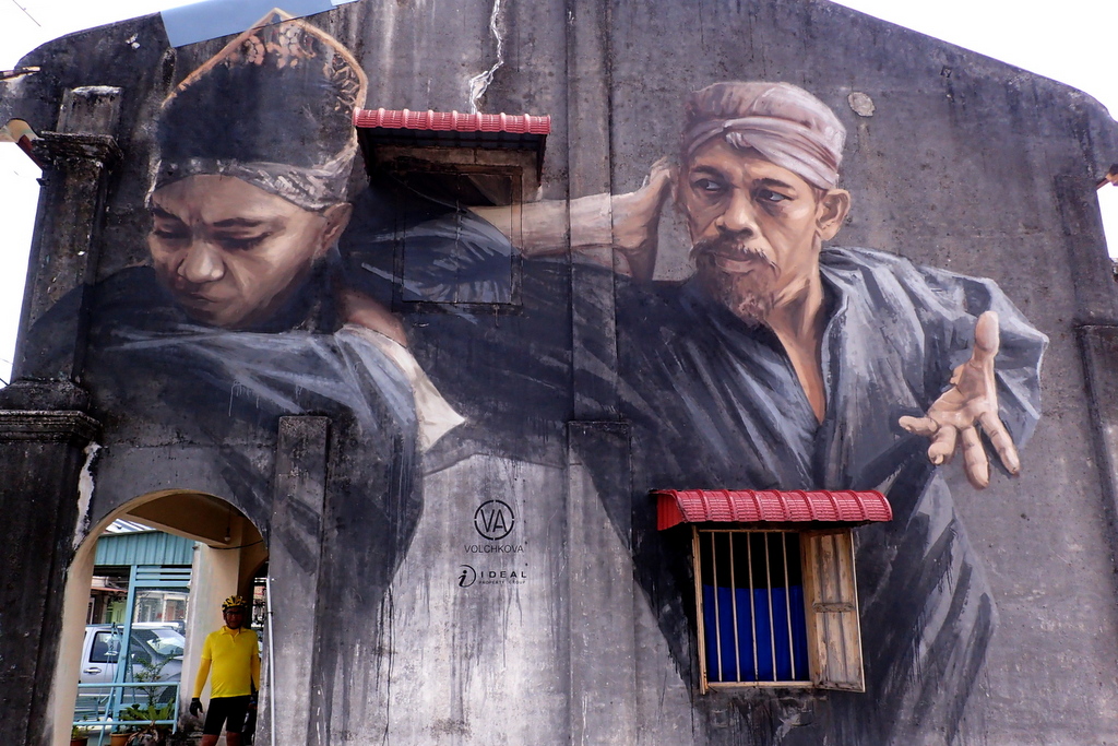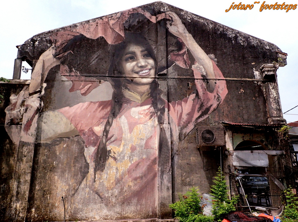 Работы Эрнеста закрепили за Пинангом репутацию города с хорошим стрит артом. Теперь сюда тянутся другие рисовальщики. Вот например несколько работ Юлии Волчковой: