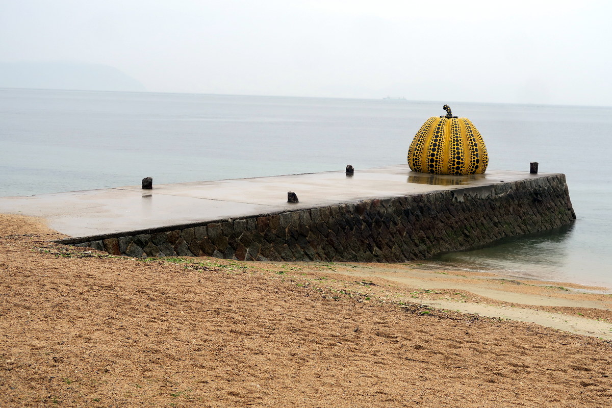 Автор этой тыквы - японская художница Яёй Кусама. Она обрела популярность ещё в 1960е, долгое время жила в Нью Йорке, и сильно повлияла на направление поп-арта. В том числе считается, что Энди Уорхол многое у неё перенял. Кусама сделала для Наосимы две тыквы - красная стоит недалеко от причала, куда приходит паром. А другая, жёлтая - на берегу с другой стороны острова.