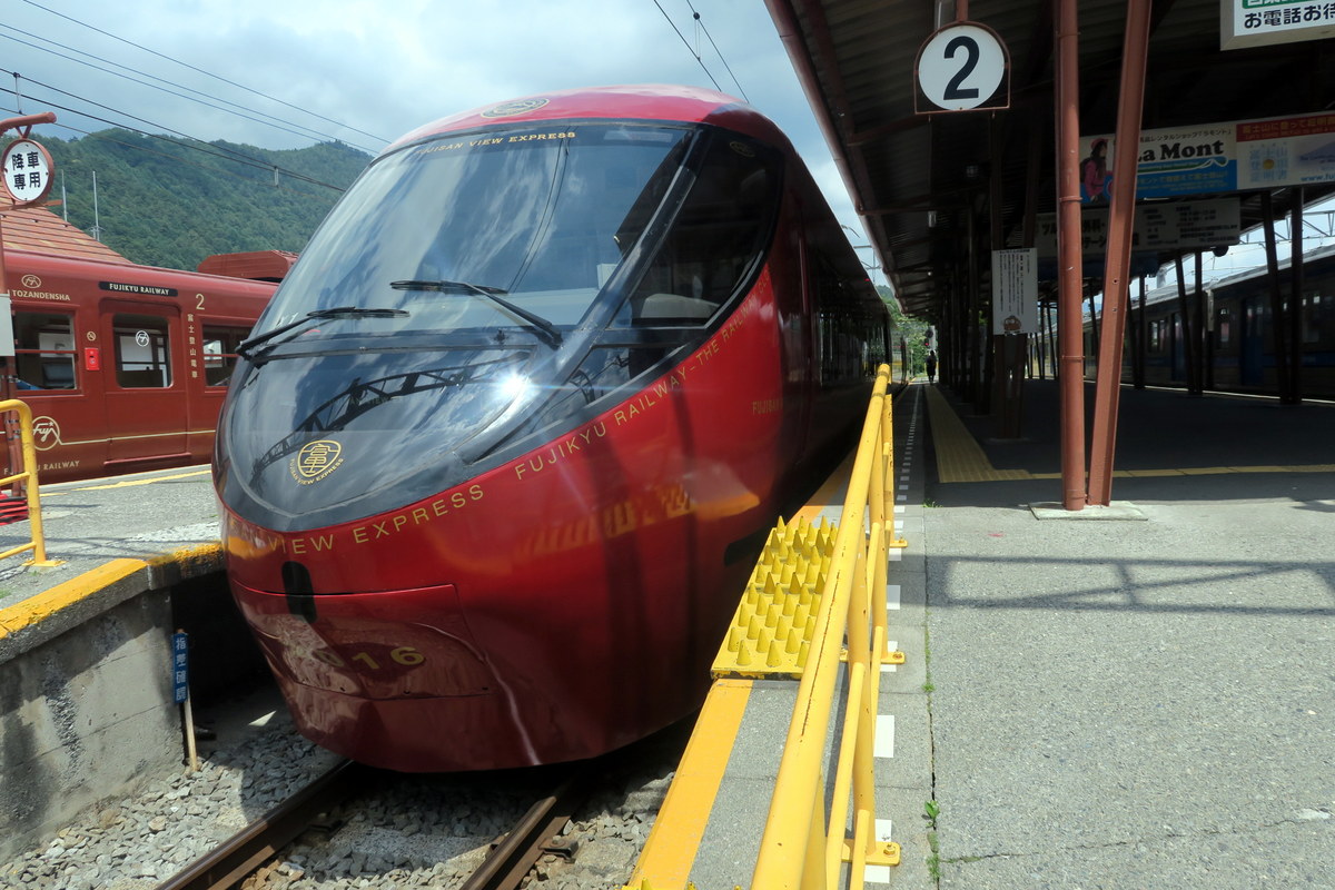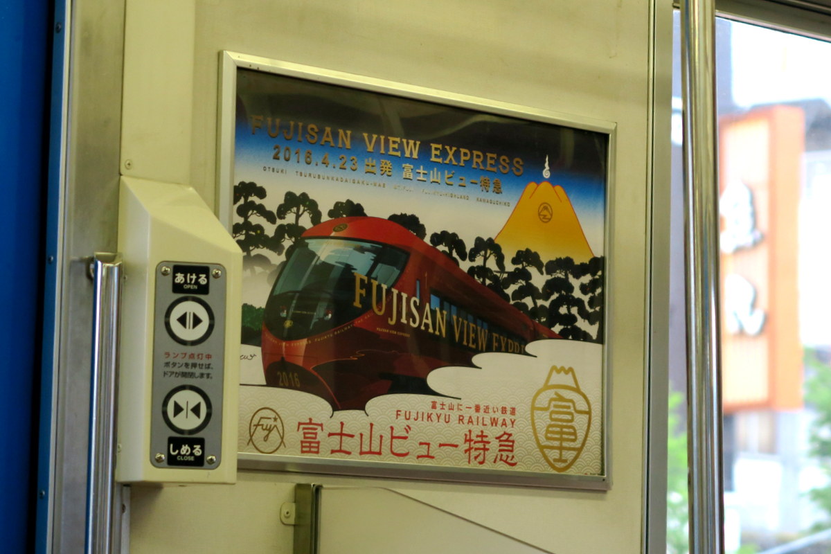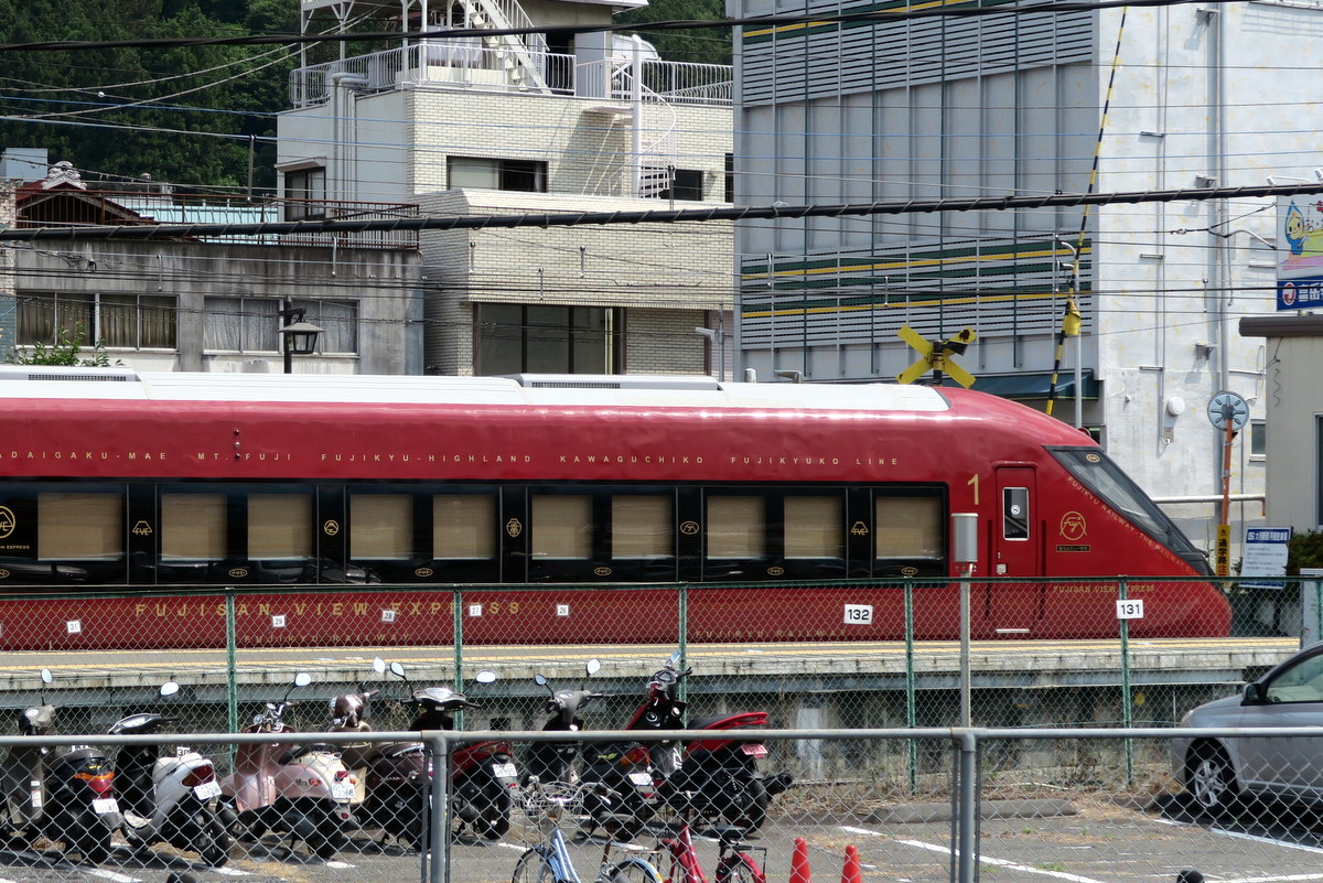 К озеру Кавагутико у подножья священной горы Фудзи ведёт частная железная дорога. Она не принадлежит к группировке JR, и на неё не распространяется железнодорожный абонемент JR-Pass. Зато железнодорожная компания Fuji Kyuko пускает по этой линии различные фирменные поезда. Об одном таком, Fujisan View Express я как раз сегодня расскажу.