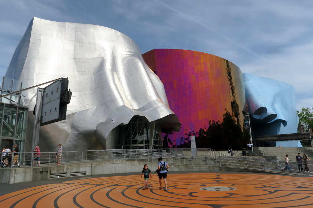 Этот музей, посвящённый странной комбинации - музыке и научной фантастике - был основан Полом Алленом, одним из начинателей Майкрософта. Его странное здание состоит из нескольких отдельных секций, каждая из них выполненна в своём цвете.