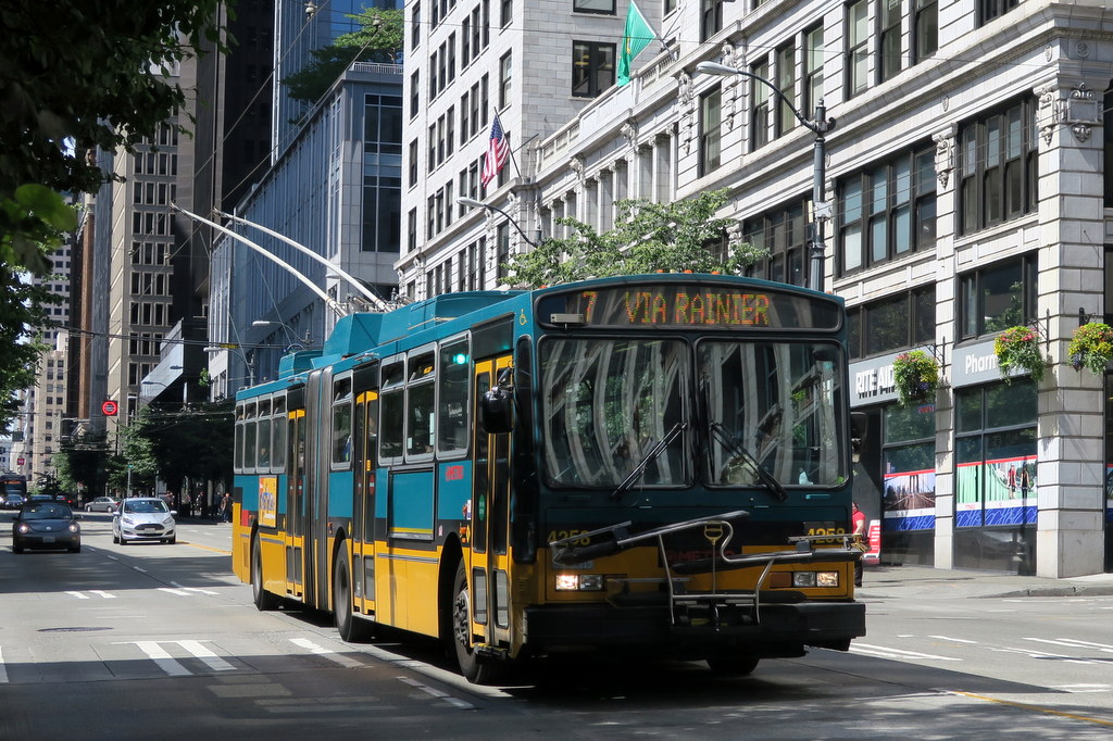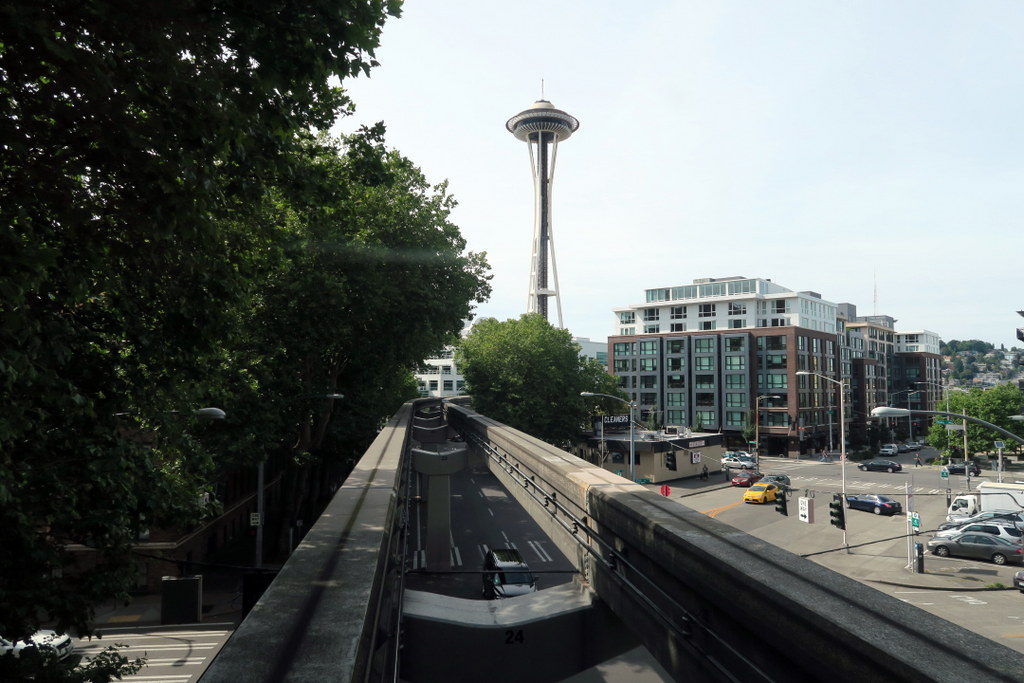 А из необычного общественного транспорта в Сиэтле ходит монорельс. Когда-то казалось, что монорельс - это транспорт будущего. Вот в Сиэтле например его построили в том же 1961 году, в аккурат ко всемирной быставке. В далёких 1960х казалось, что это технология будущего.