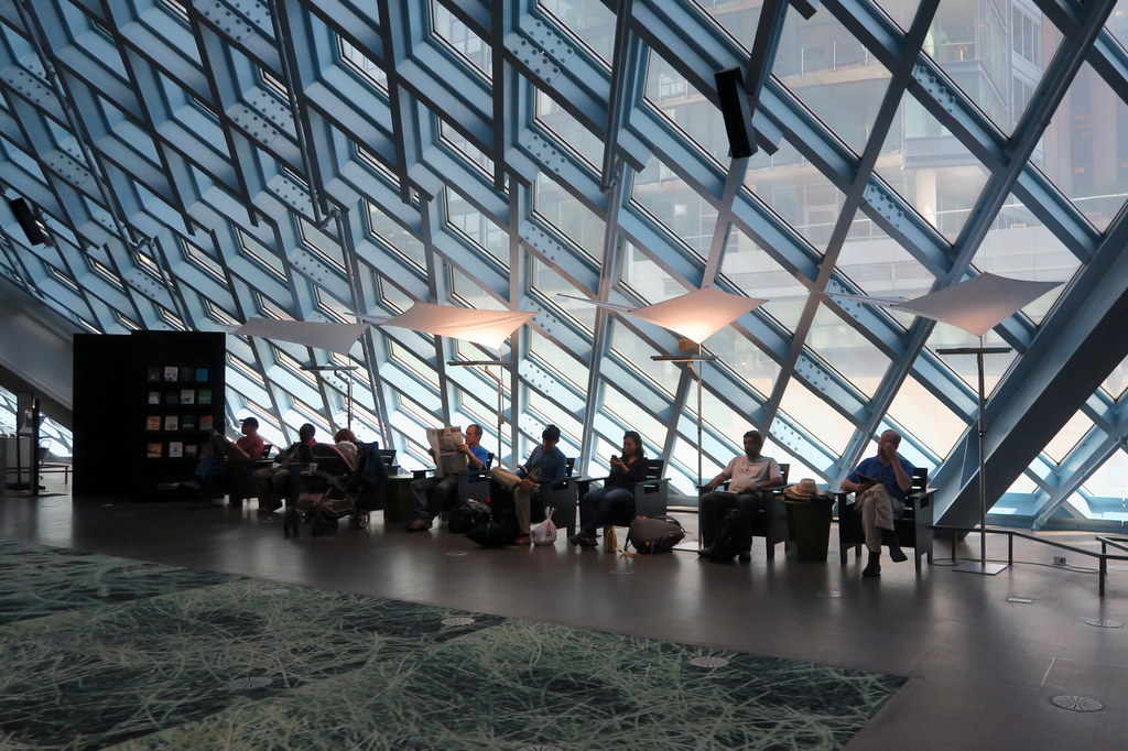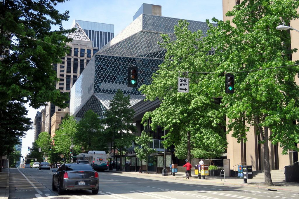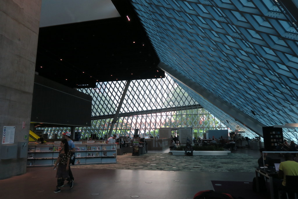 В Сиэтле немало интересных зданий. Вот например знаменитая Центральная Библиотека. Она была построена в 2004.