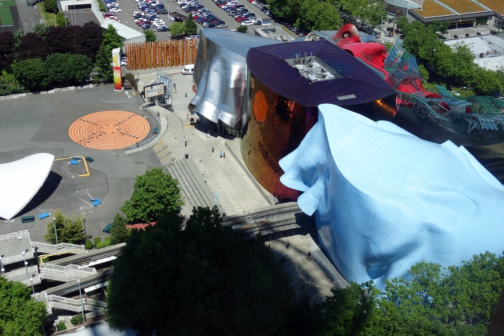 А ещё отсюда хорошо смотреть вниз на странное здание соседнего музея EMP.