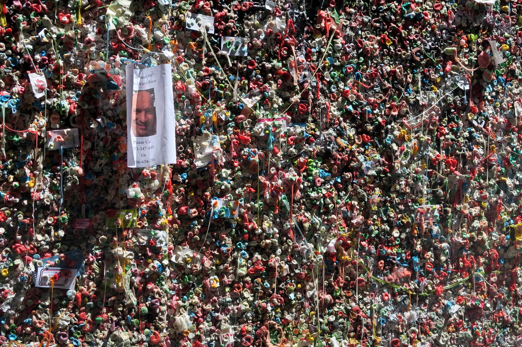 Кроме этой кофейни, из туристических достопримечательностей тут есть стена жвачки. Странное место. Сюда приходят туристы, лепят жвачку на стену и фотографируются.