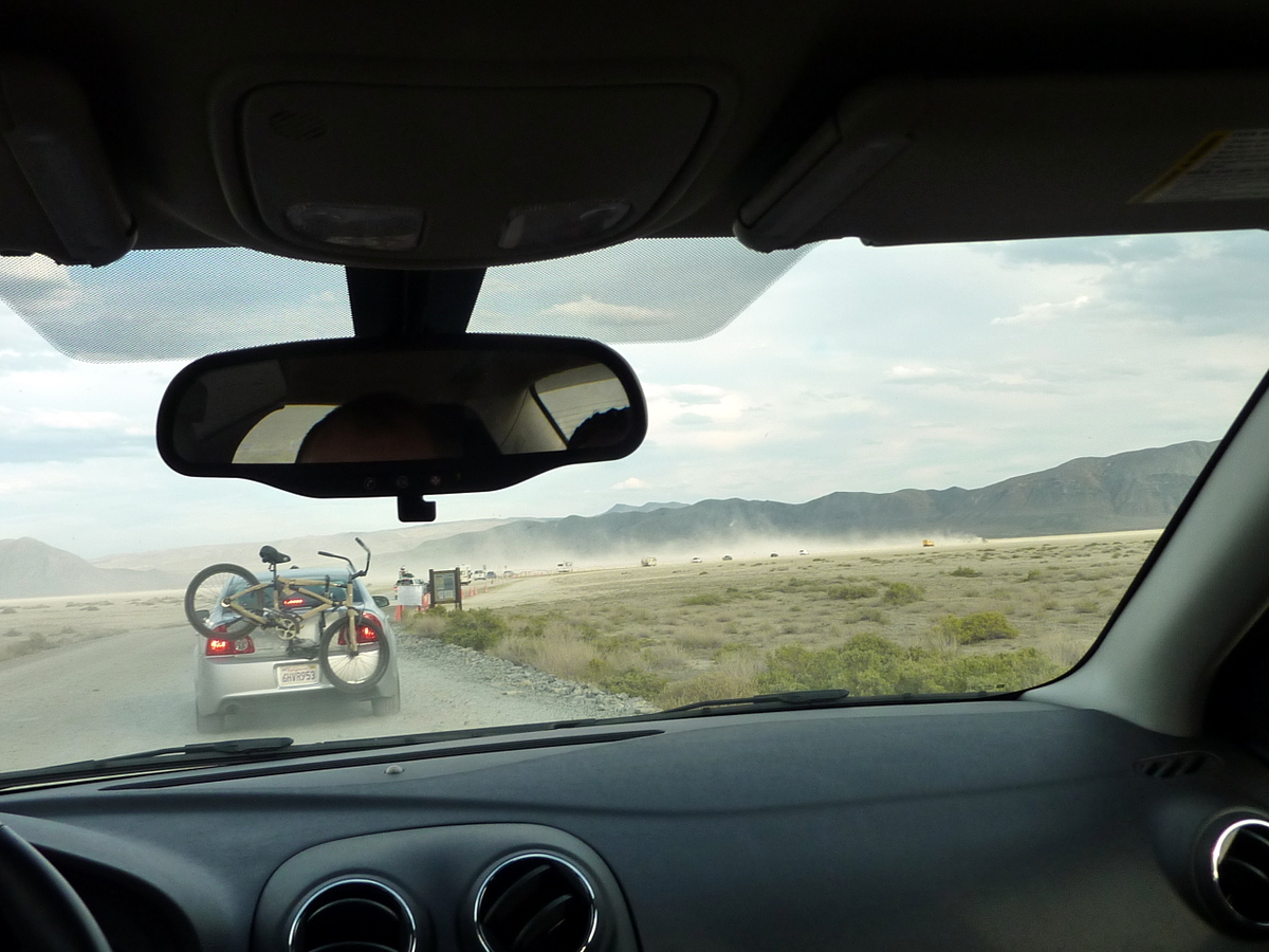 Мы въезжаем в Black Rock City - Город Чёрной Скалы. Вдалеке уже виднеется статуя Мэна (это он на заглавной фотке). Мэн будет нашим ориентиром до его сожжения в субботу вечером.