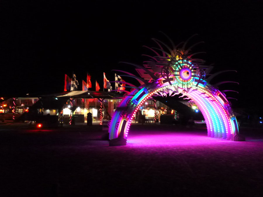 Продолжаем двитаться от Мэна в сторону 12:00 (там есть прямой бульвар), и приходим наконец к Храму. Центр-Кэмп - Мэн - Храм, вот главная ось Блэк Рок Сити. Они расположенны вдоль одной прямой, и являются самыми важными объектами фестиваля Burning Man.