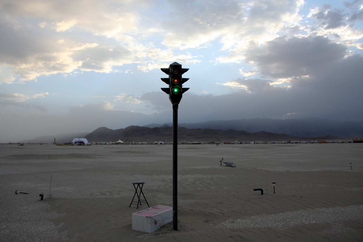 А в 2007 наши друзья решили обыграть тему безгранной пустыни, поставив посреди неё светофор, который на самом деле работал!