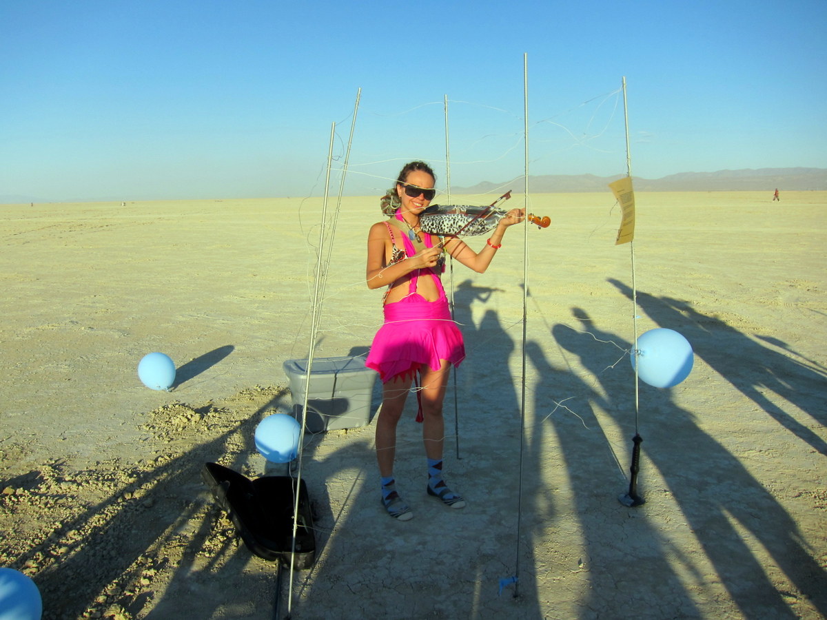Но самой крутой пожалуй инсталляцией порадовал нас Макс в 2010 году. Причём этот проект прекрасно подходил нашему лагерю по тематике! Макс решил построить клетку для выступления пацаков. В ней находилась скрипка, к которой был приделан маленький беспроволочный микрофон, передающий звуки игры на усилитель, и колонки, закопанные вокруг клетки. Когда кто-то начинал играть на скрипке, вокруг него раздавался неожиданно громкий звук, как в том моменте, когда жительница Плюка прослушивает Дядю Вову.
