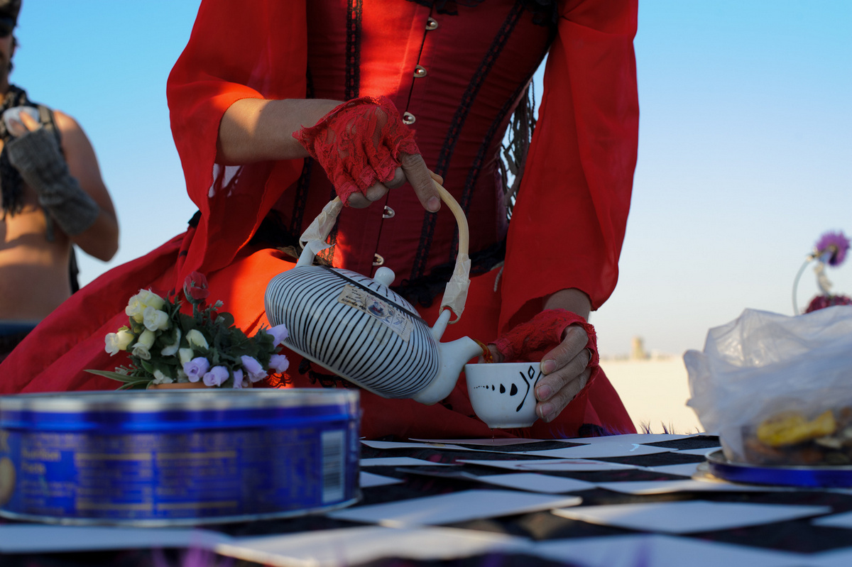 Благодоря ей, у нас есть специальные фарфоровые чайники и чашечки с рисунком Бёрнинг Мэна.