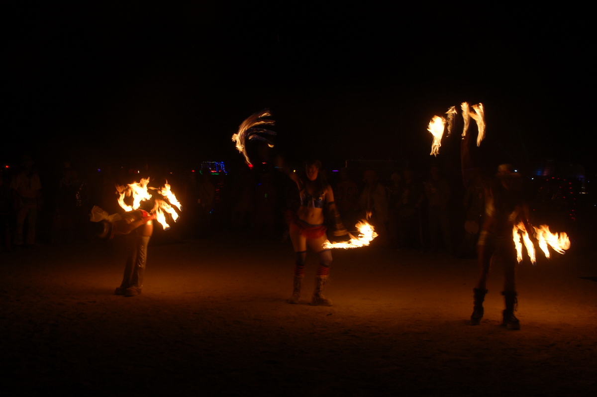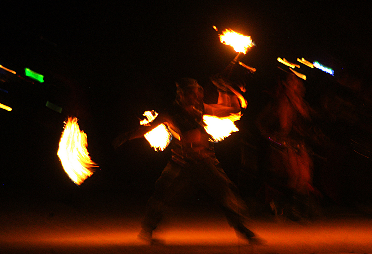 Вокруг Мэна проводят довольно сложную церемонию. Так как пожар будет большой, периметр на сто метров вокруг него отгораживают, и в этот круг не пускают "зрителей". Сначала там проходят танцы с огнём, чтоб собравшейся толпе не было скучно ждать.