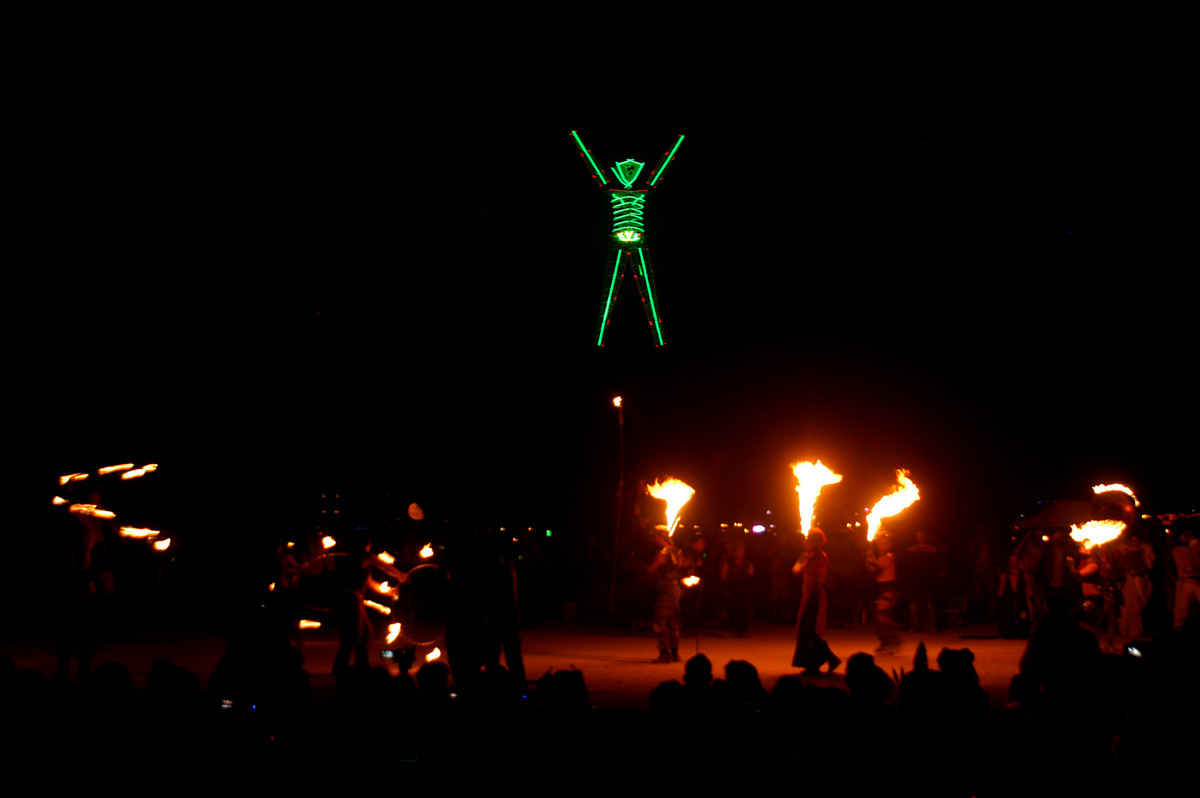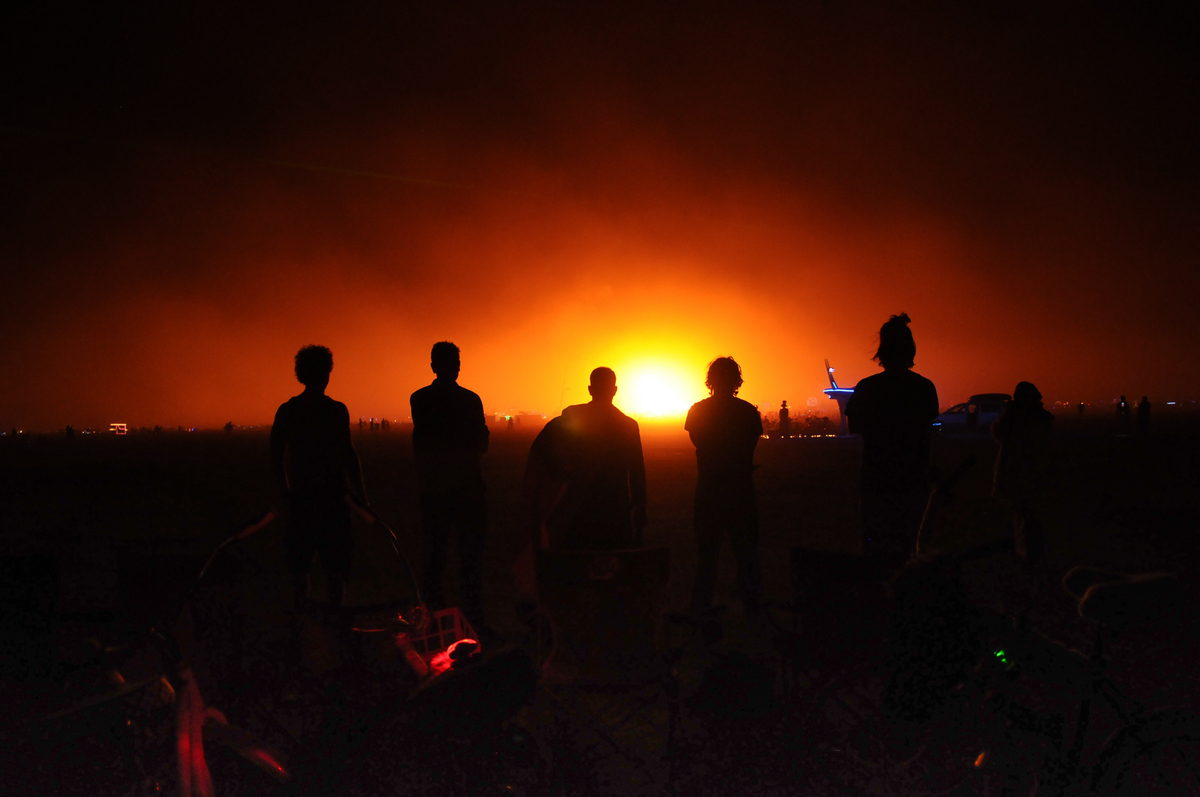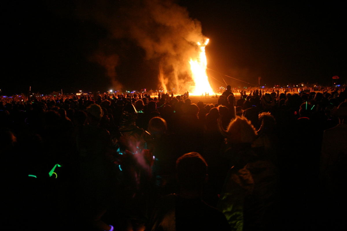 Смотреть на сожжиние Мэна собирается практически весь фестиваль - десятки тысяч человек окружают его постамент широким кругом. Кстати если зайти со стороны Храма, то там поменьше людей, так как обычно все приходят в круг из своего сектора Блэкрок Сити.