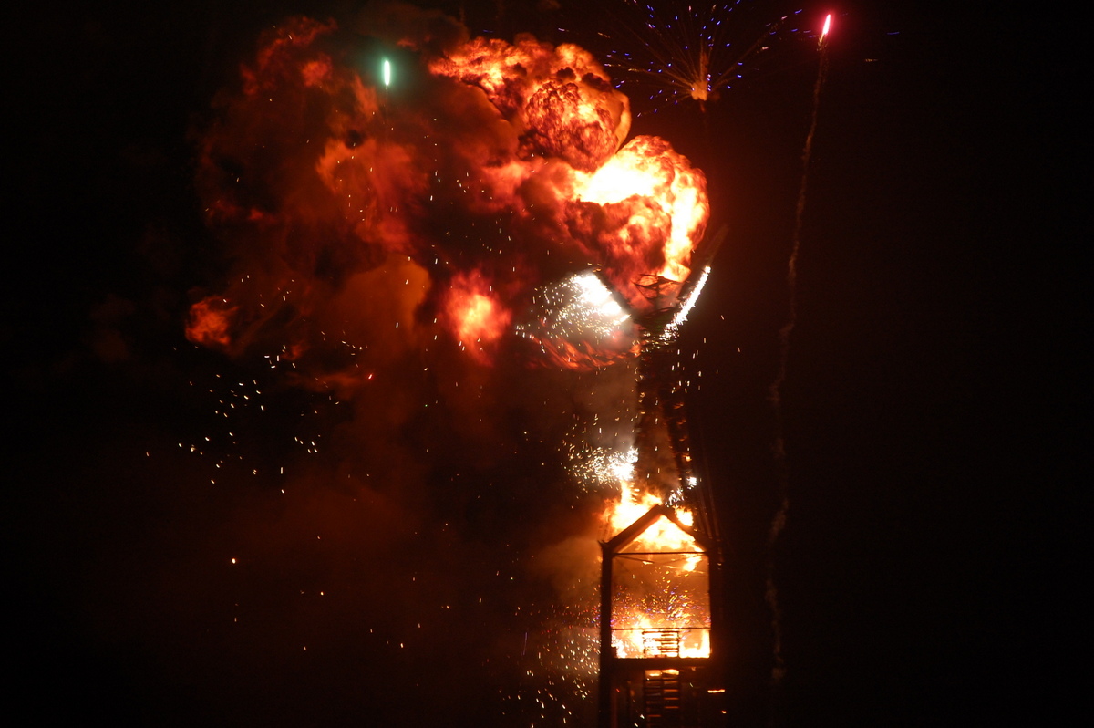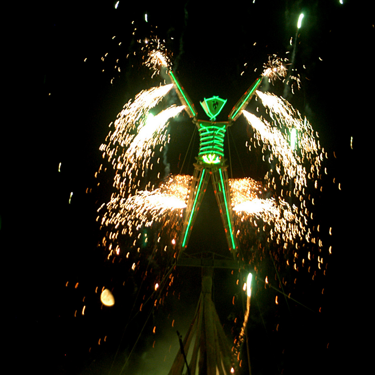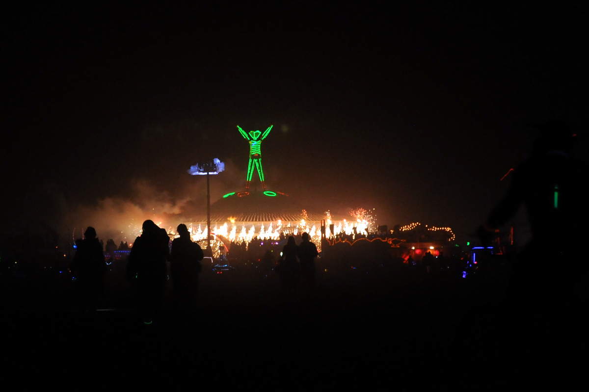Гигантский Мэн стоял посреди фестиваля, и всю неделю служил нам верным ориентиром. Но вчера его время подошло к концу.
